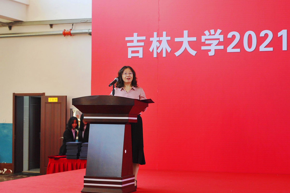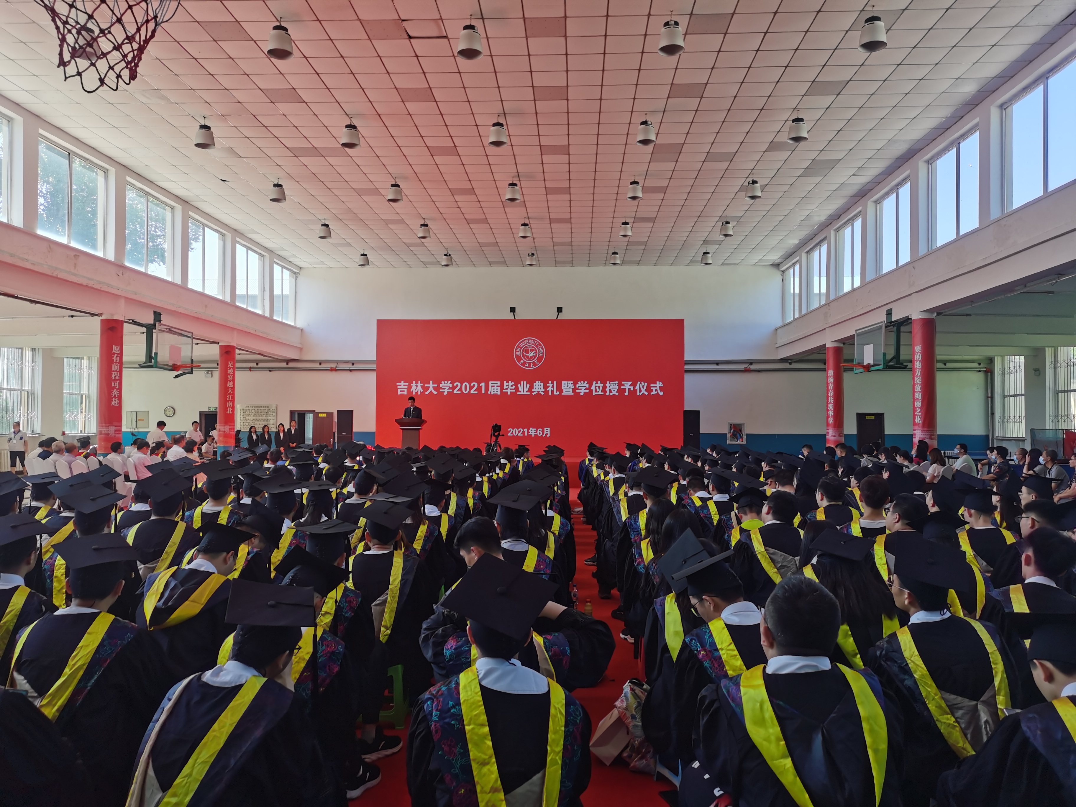 2021届毕业典礼暨学位授予仪式在吉林大学朝阳校区体育馆隆重举行。吉林大学北区综合办公室主任李玉堂,北区学生工作办公室主任左振鹏,北区教务办主任张宇,学院领导班子全体成员,院教学委员会主任陈祖斌,毕业年级班导师,各系主任,学院相关职能部门负责人,教师代表及2021届全体毕业生参加典礼。毕业典礼由党委副书记兼副院长周伟主持。