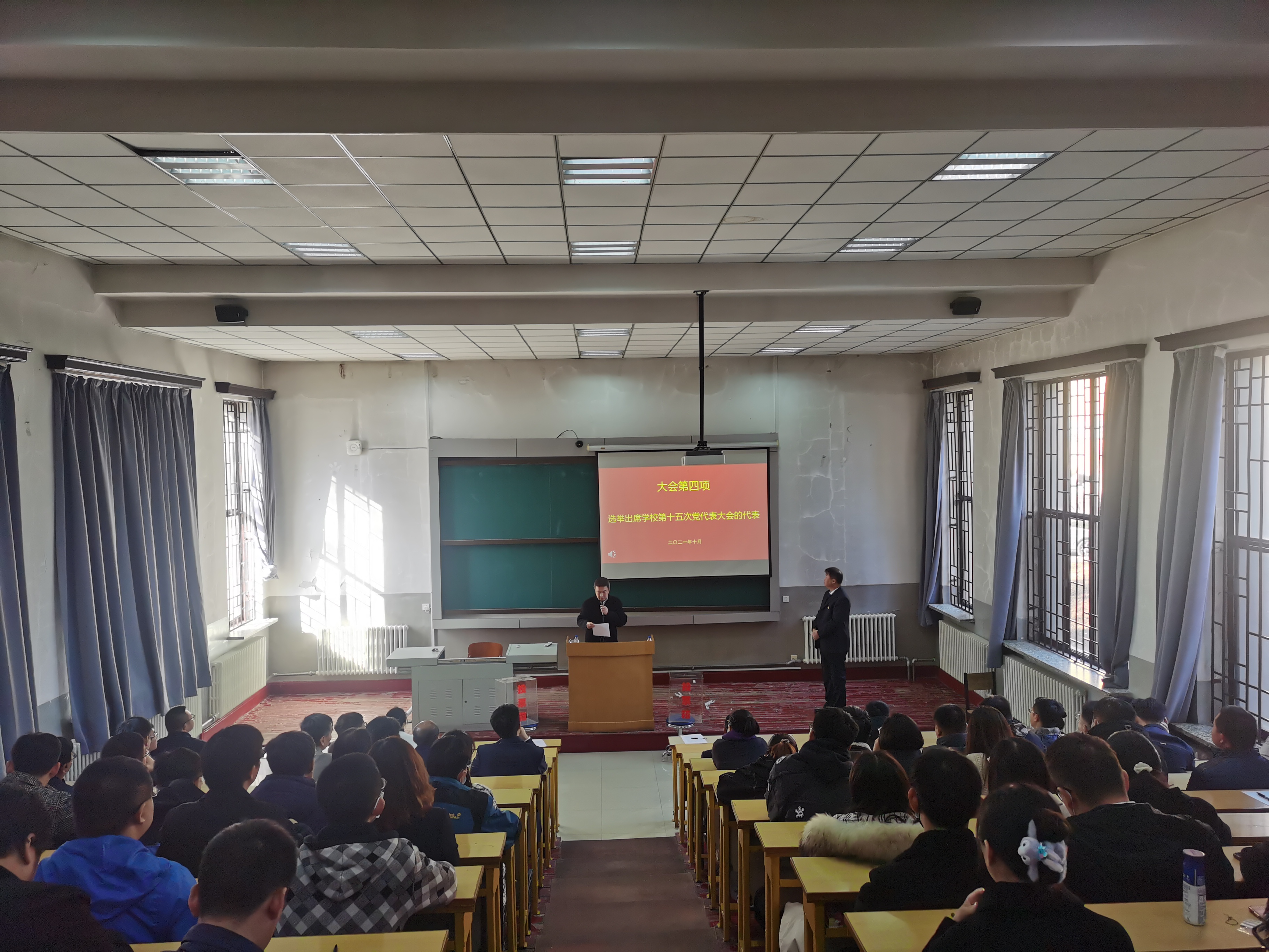 党委在朝阳校区地质宫224召开全体党员大会。会议由学院党委书记邱增凯同志主持。