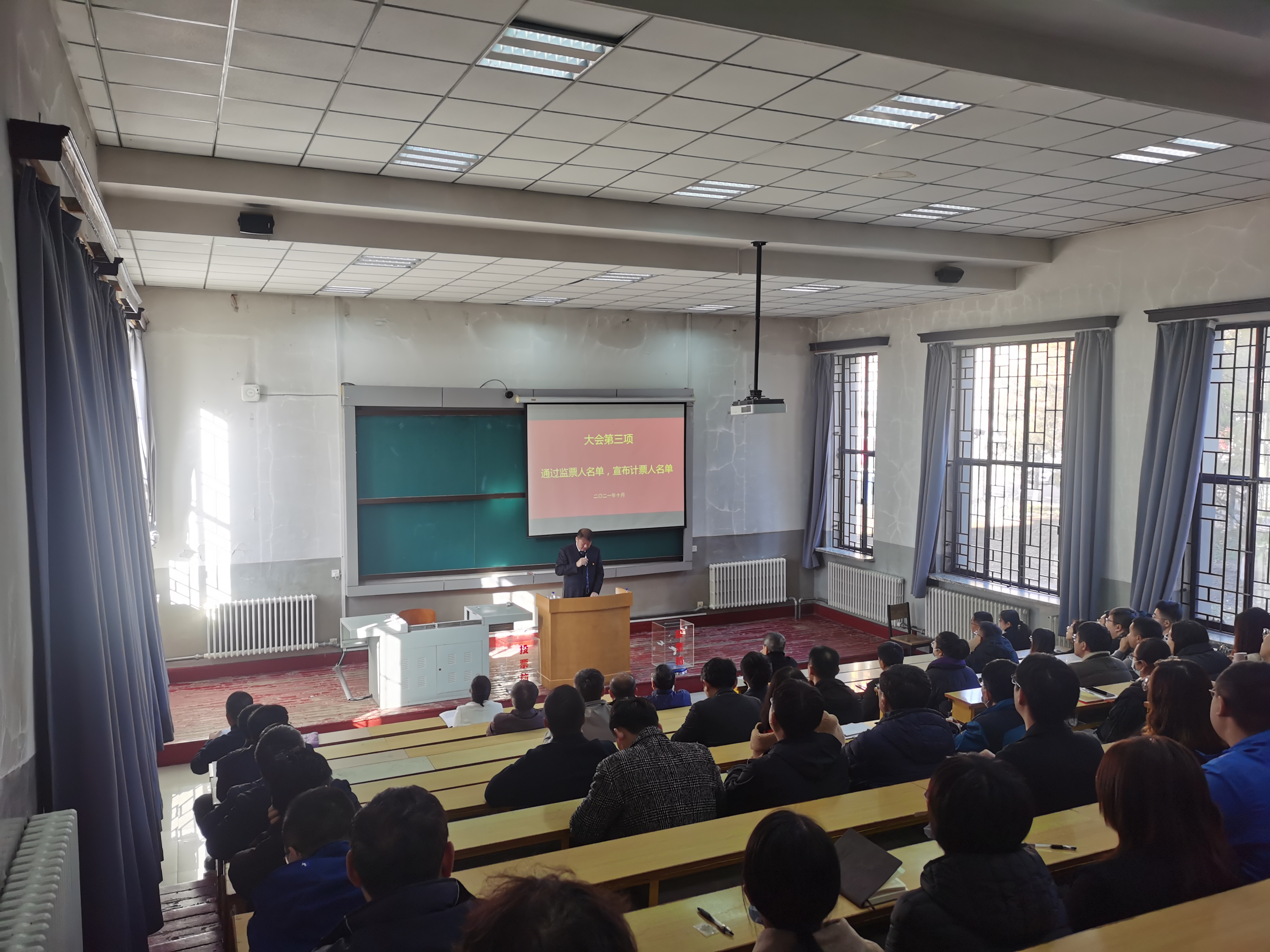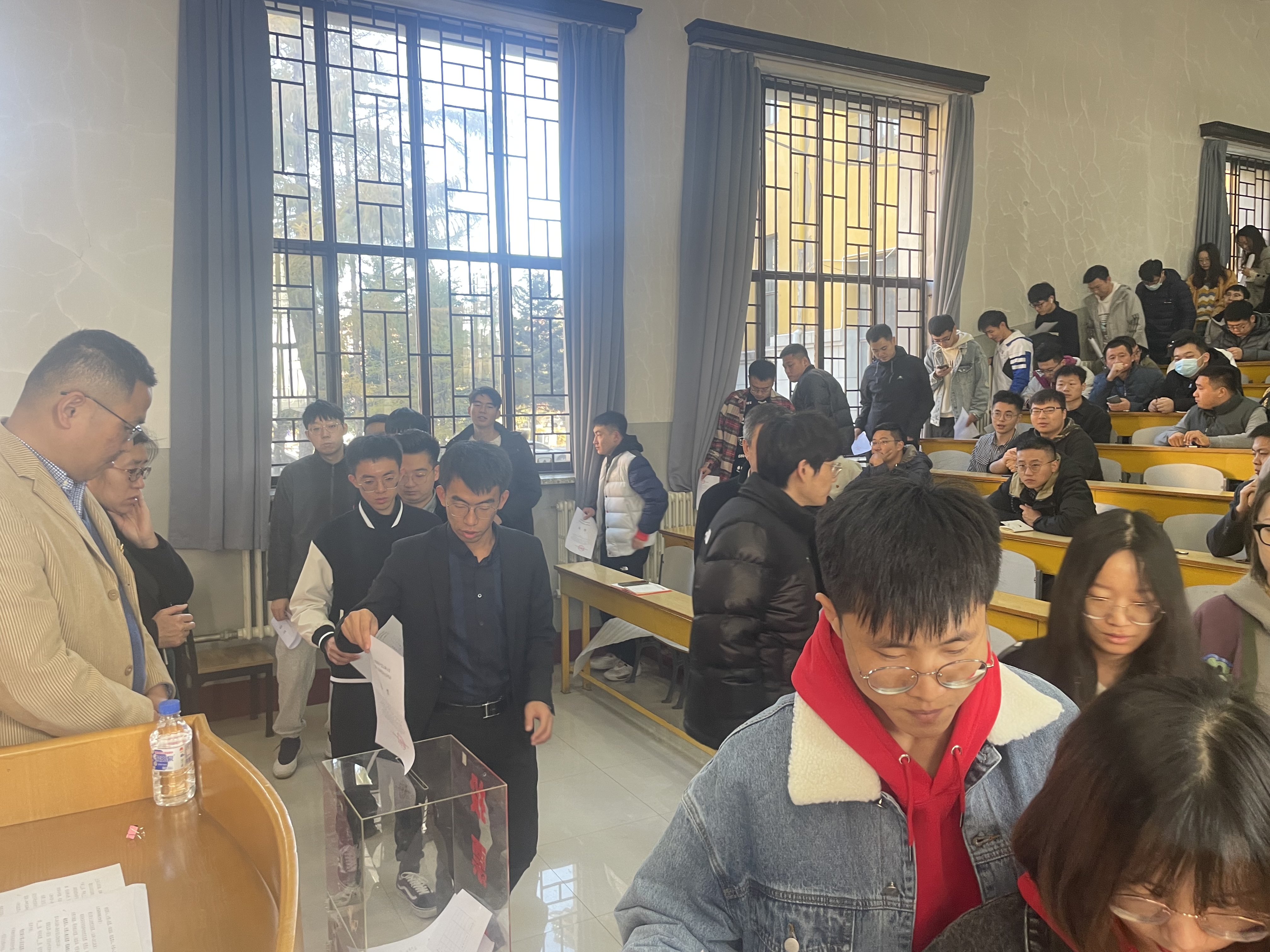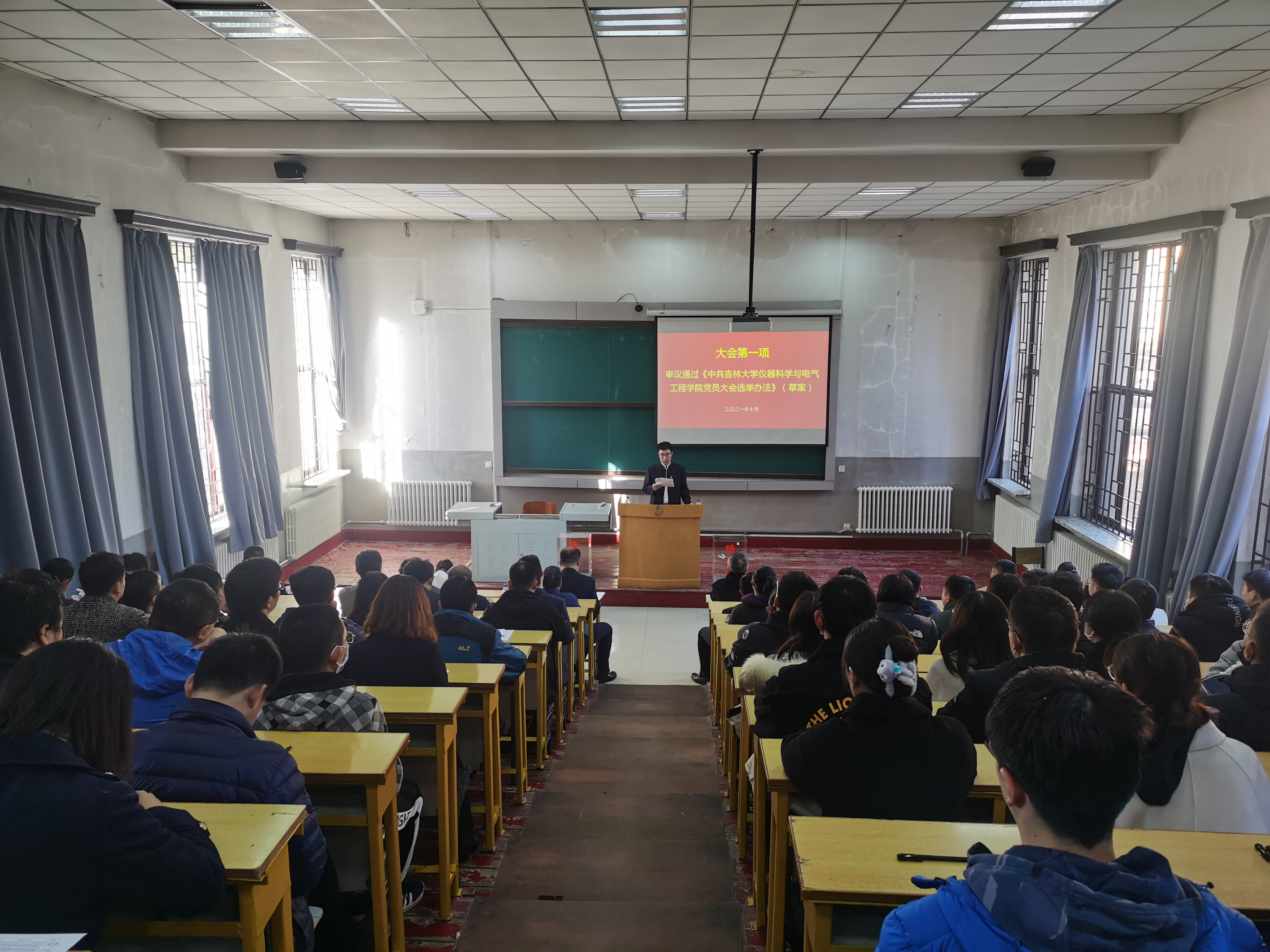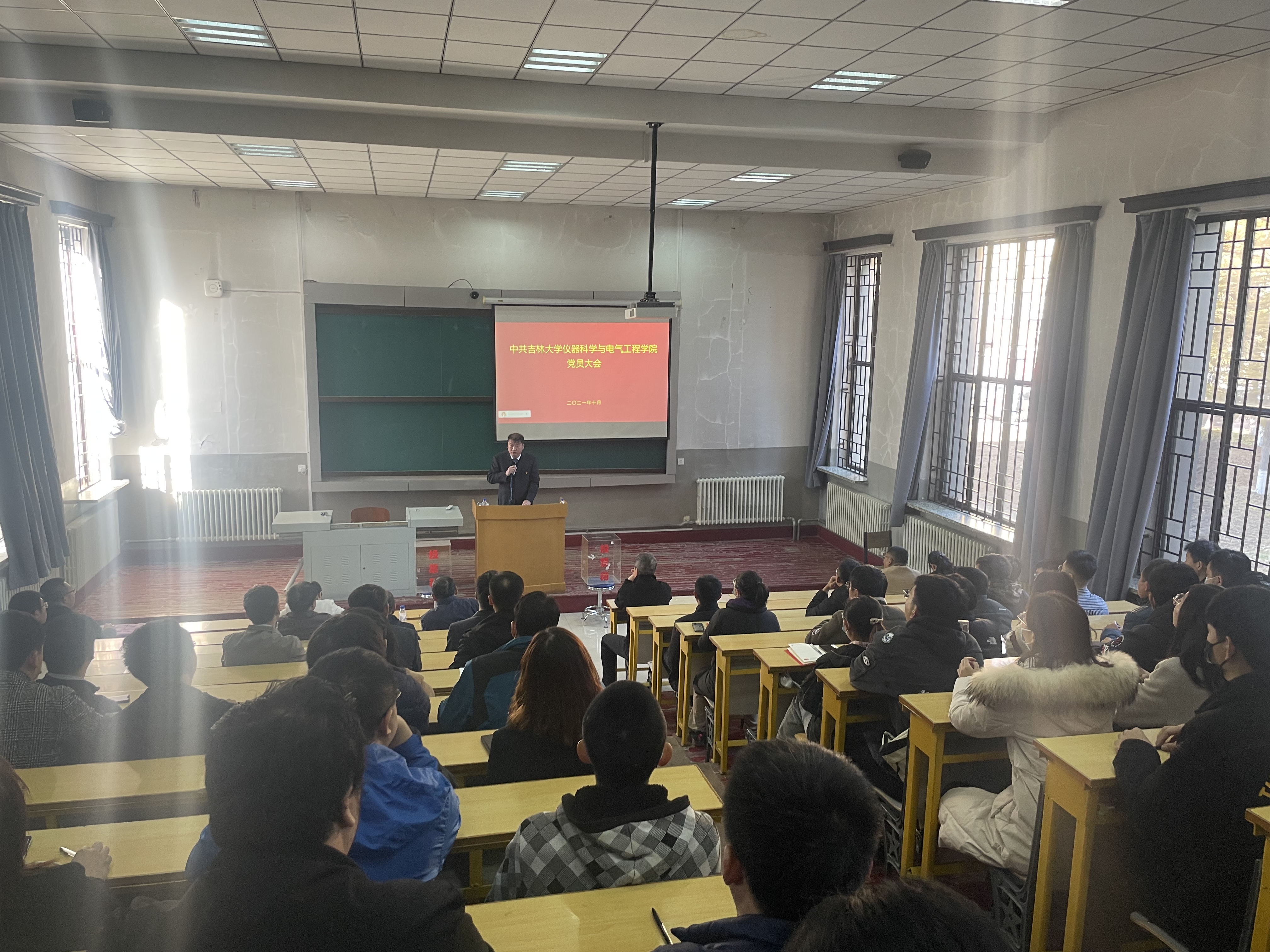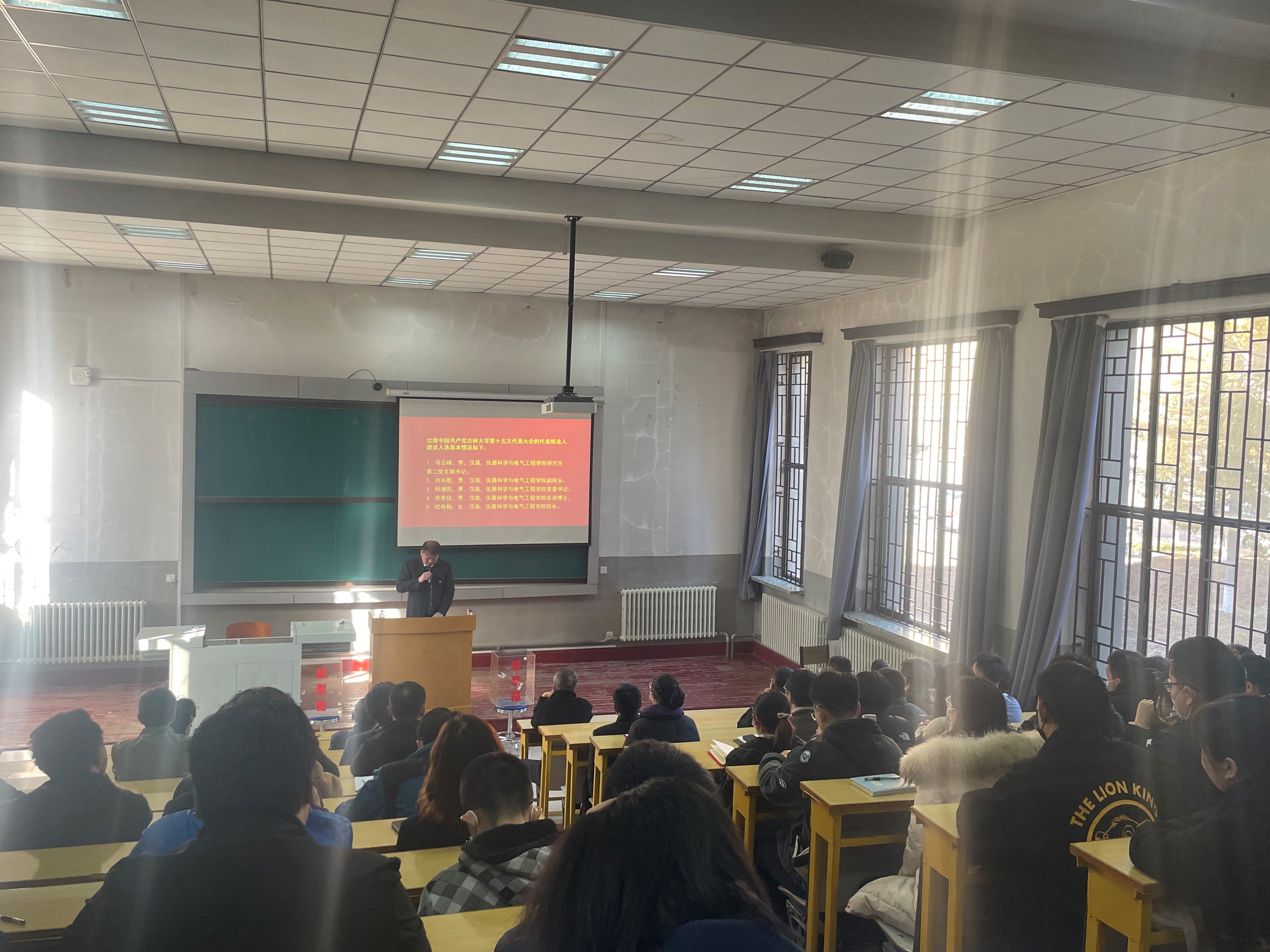 党代表选举办法(草案)》,学院党委书记邱增凯同志宣读了代表候选人建议名单并逐一介绍了候选人情况,大会通过后,又宣读了监票人建议名单,并提请大会表决通过,接着,会议指定了计票人;随后,全体党员在工作人员的组织下认真填写选票并完成投票。本次党员大会本着公开透明的宗旨,充分发扬党内民主,进一步彰显了党员的知情权、参与权、选择权和监督权。最后,邱增凯同志现场公布了投票结果,并对新当选的中国共产党吉林大学第十五次代表大会代表表示祝贺。