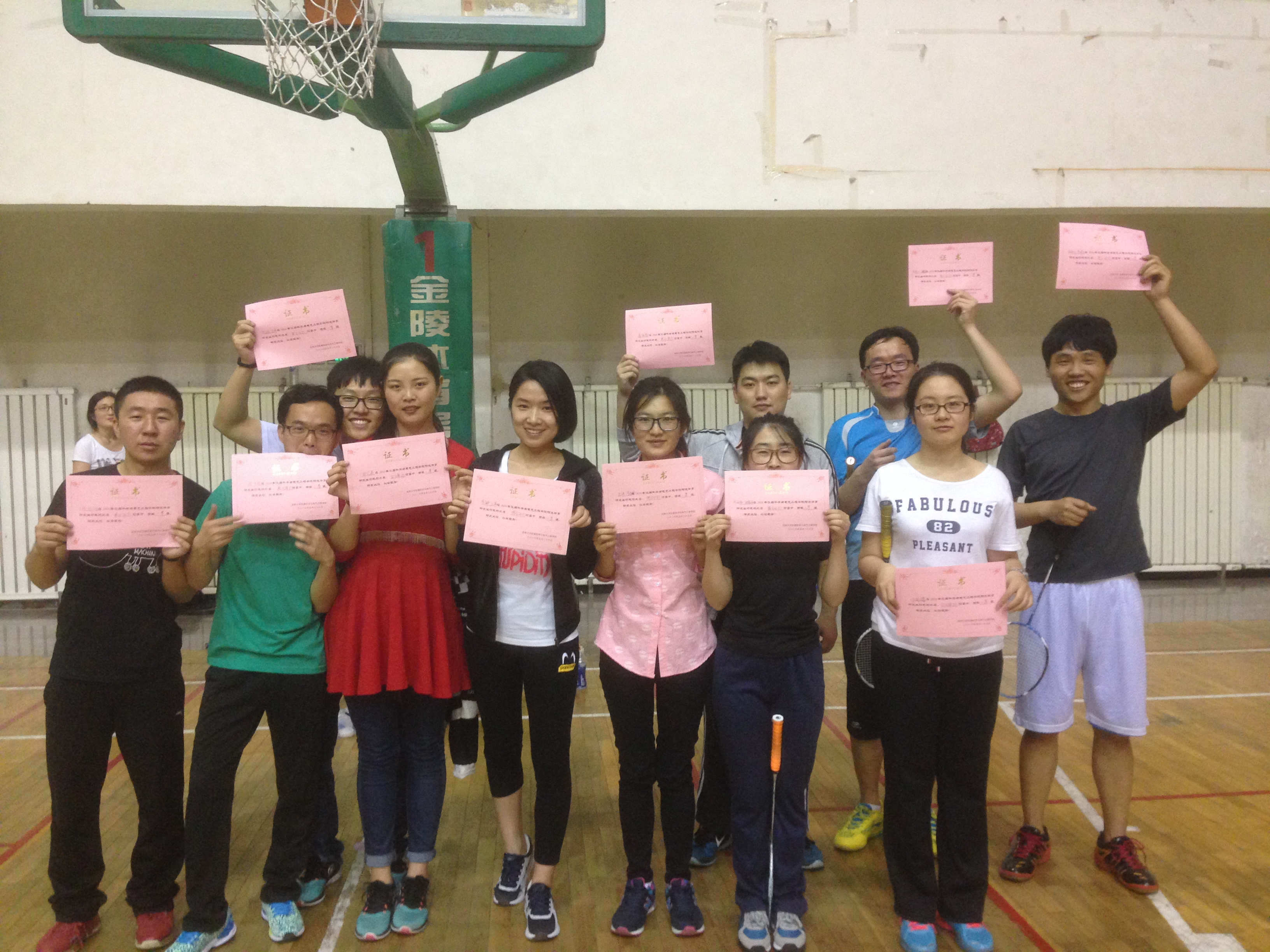 比赛结束后院研究生会给获得名次的同学颁发奖状和奖品,并鼓励他们在接下来的工作和学习中积极努力、再创辉煌,为我院争光。对于本次比赛中不慎位于下风的选手鼓励他们不要气馁、要在以后的时间加强练习,争取在下次比赛中勇创佳绩。场上除了大家挥洒的汗水,更多的是友谊的欢笑。本次比赛不仅丰富了同学们的课余生活,增进了大家进行体育锻炼的积极性,更加强了大家之间的交流,增进了友谊。最后,我们希望即将毕业的师兄师姐们在以后的日子里工作顺利,愿你大家都有辉煌的前程。