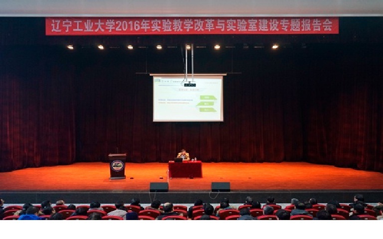 2016年1月17日,我院实验教学中心主任凌振宝教授应辽宁工业大学邀请,在辽宁工业大学图书馆报告厅作了实验室建设专题报告,辽宁工业大学校长佟绍成教授,校组织人事部、教务处、教学质量评估处、资产管理处等职能部门负责人、各学院全体中层干部、实验教师共200余人参加报告会,会议由辽宁工业大学教务处处长吕义主持。
