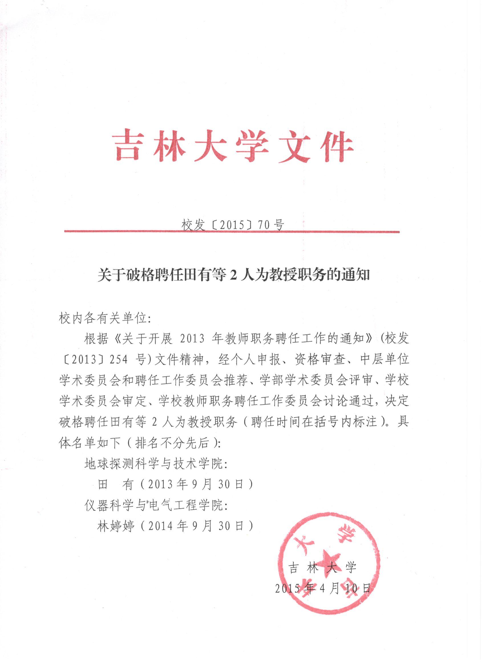 我院林婷婷同志经个人申报、资格审查、中层单位学术委员会和聘任工作委员会推荐、学部学术委员评审、学校学术委员会审定、学校教师职务聘任工作委员会讨论一致通过,决定破格聘任林婷婷为教授。