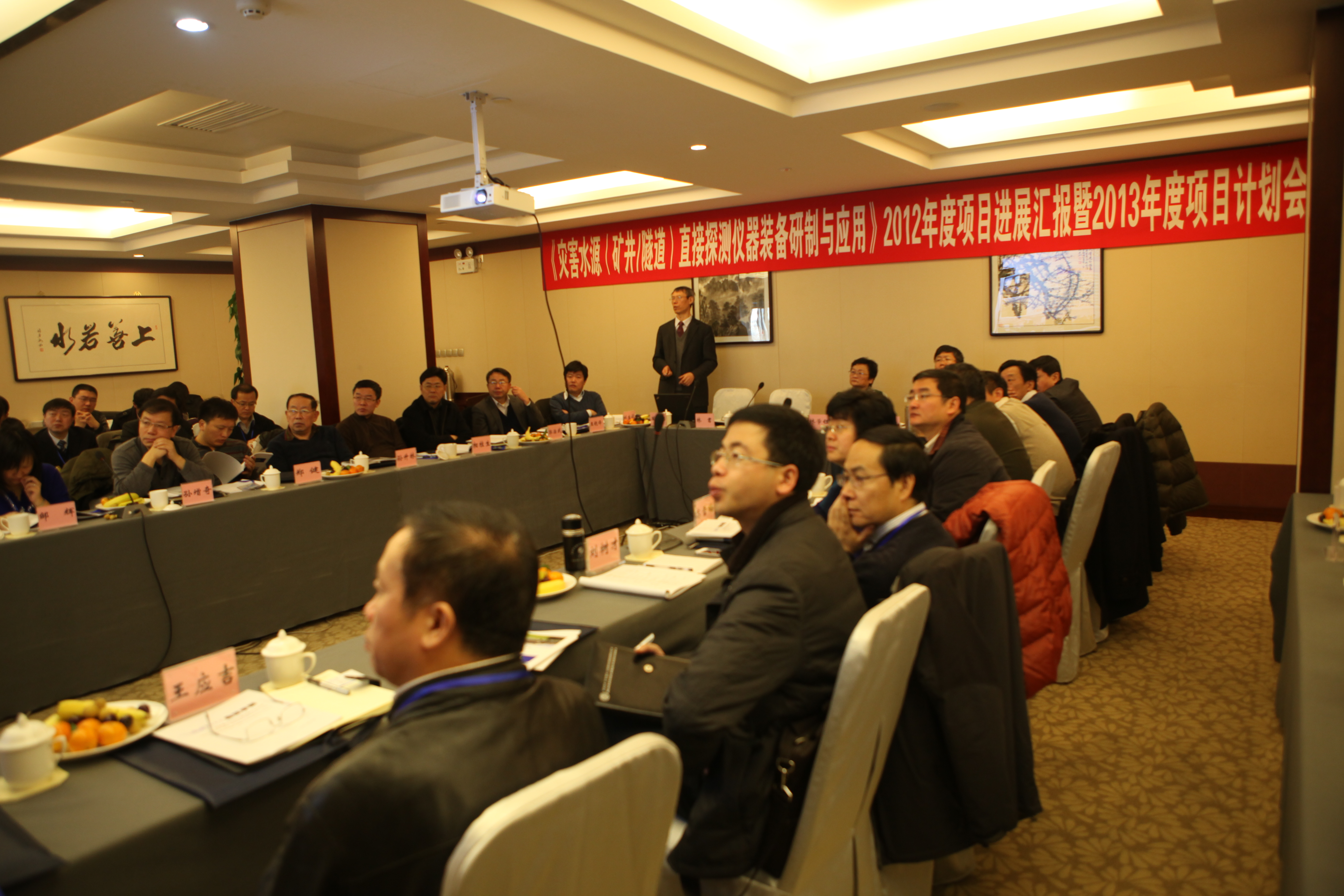 2013年1月12日,国家重大科学仪器设备开发专项“灾害水源(矿井/隧道)直接探测仪器装备研制与应用”2012年度项目进展汇报暨2013年度项目计划会议在北京贵州大厦顺利举行。