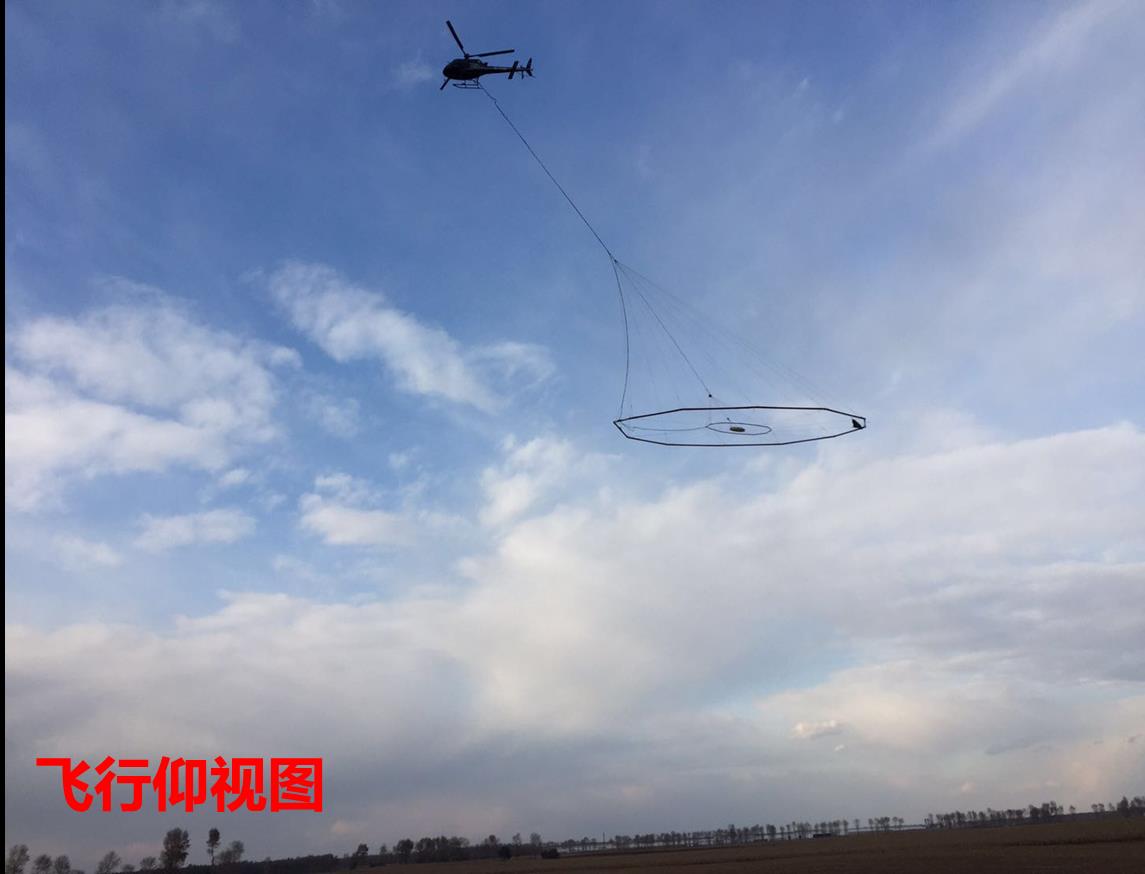 2017年10月18日,随着直升机轰鸣声响起,由国家十三五重点研发计划课题支持,我院自行研制的软支架直升机吊舱式时间域航空电磁探测系统,在黑龙江省齐齐哈尔市富裕县首飞取得圆满成功。