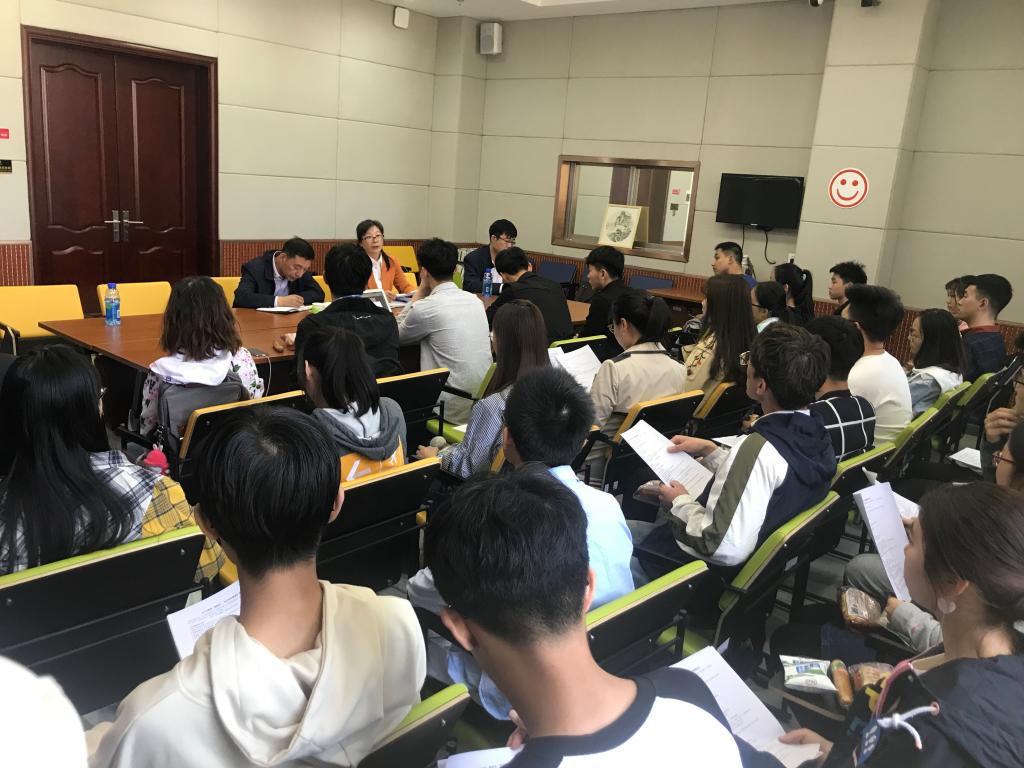 院长嵇艳鞠,党委书记王爱民,党委副书记兼副院长周伟,学生工作办公室主任兼2016级辅导员王冕老师与学院2016级、2017级学生代表畅谈交流,共话青年成长成才。