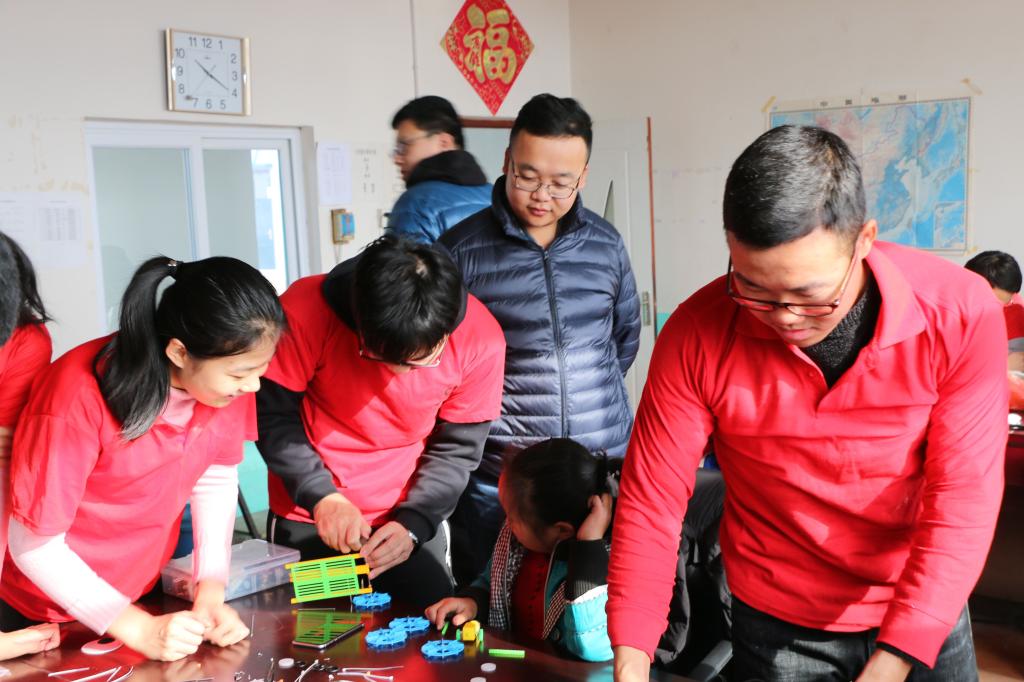 11月8日,仪电学院师生带着精心准备好的礼物和洋溢的热情到达刘芳小学,校长带领老师们对扶贫小队的到来表达了欢迎及感谢。科技课堂开始后,小队成员与六位小学生一见面便打成一片,同学们指导孩子制作电子马车,同时宣传组为刘芳小学制作两面弘扬社会主义核心价值观的黑板报,其中一面主题为“少年中国说”,启迪学生树立远大志向,而另一面以我校校训“求实创新,励志图强”为主题,这不仅是“吉人天下”的印记,更是在激励学生努力学习。马车制作完成后,孩子们还在空地上进行了比赛,看着他们充满活力的笑脸和对电子科技表现出的兴趣,小队成员们倍感高兴与欣喜。午餐完毕,小队成员们与孩子们一起玩耍,进行了木头人、你画我猜等趣味活动。