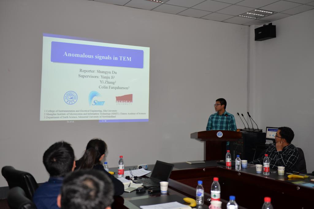 党委书记王爱民代表学院致欢迎词,对中国科学院上海微系统与信息技术研究所相关方向负责人一行的到来表示热烈欢迎。随后,中国科学院上海微系统与信息技术研究所张懿教授对联合实验室几年来的工作进行了回顾,并对下一步工作进行了展望。接下来,院长嵇艳鞠对我院学科建设、科学研究方向、协同创新等方面进行了介绍,并详细介绍了联合实验室在超导瞬变电磁法对感应极化双场测量方向的研究进展。最后,双方共16名专家及学生围绕超导瞬变电磁法、航空超导磁梯度测量技术、超导核磁共振找水技术等方向的研究进展在研讨会上做了学术报告。会后双方就进一步的合作进行了深入的探讨,并达成共识。