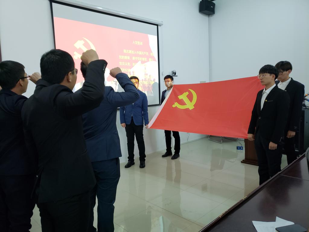 团委书记、电气工程及自动化专业本科生党支部书记张昊宇带领全体新党员面向党旗庄严宣誓。之后,新党员代表张成刚同学做了表态发言。