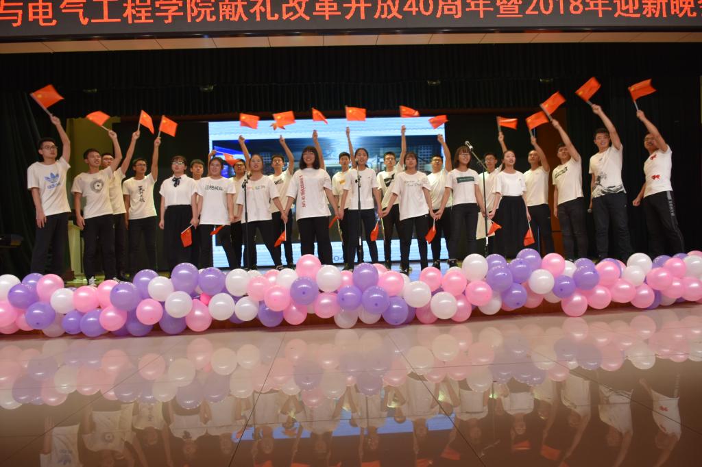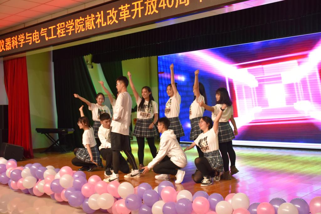年华似水,树树花开花落;时光如梭,日夜斗转星移,又是一年迎新时。随着开场舞《Have a Good Time》音乐响起,仪电的俊男俊女们正式拉开了晚会的序幕,他们用节奏感十足的舞曲串烧点燃了现场观众们的热情,随后仪电学院第十四届团学联学生干部更为新生带来了一支《狂拽激光舞》,光随影动,人舞交融,台下掌声、欢呼声、快门声此起彼伏,晚会即刻进入高潮。小品《我只想睡个好觉》,通过宿舍睡眠问题告诉同学们如何处理好与舍友之间的关系;诗朗诵《乘风破浪四十年》,七位同学慷慨激昂的朗诵向大家展示了改革开放的40年既是中国不断走向辉煌的40年,也是不断彰显民族自信的40年,更是不断提升大国形象的40年;歌曲《飘向北方》,两位同学完美的诠释了“说唱与流行碰撞,少年行囊在肩上”;相声《中国之声》,搞笑而又深刻的讲述了改革开放四十年来中国在世界舞台上不断发展壮大,以一个负责任的大国形象积极为世界提供“中国方案”,让世界倾听“中国声音”;乐器《梁祝》,中西乐器的完美结合,悠扬动听;歌曲《南山南(吉大版)》,将大家在吉大的美好邂逅到对未来的约定,用歌声唱了出来;走秀《科技之光》,将学院学生制作的优秀科技作品展示给大家,紧跟着来了一段《机器人舞蹈》;舞蹈《Dope》,跳出青春的节拍,跳出时代的风采;歌曲《歌曲串烧》,四位歌手带来了动听的歌声;小品《上学那些事》,同学们精湛的演技让观众捧腹大笑,节目最后展出的历届学院优秀学子更是让在场的每位仪电人感到自豪;合唱《春天的故事》,重温那春天的故事,感受祖国的昌盛,全程气氛更是达到了高潮。最后,领导嘉宾与演职人员登上舞台合影留念,至此,晚会圆满落幕。