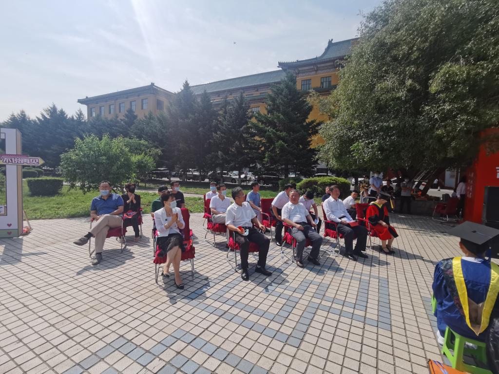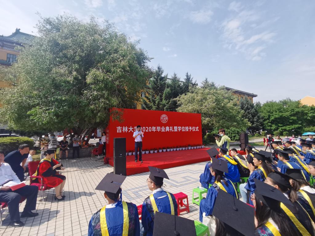2020年毕业典礼暨学位授予仪式在吉林大学朝阳校区科技之星广场隆重举行。吉林大学北区综合办公室主任戴世和,北区学生工作办公室主任贾晓辉,北区教务办主任苗广文,吉大致远资产经营有限公司副总经理、原16级辅导员王冕,学院领导班子全体成员,院教学委员会主任陈祖斌,院学科学位评定分委会副主席于生宝,毕业年级班导师,各系主任,学院相关职能部门负责人,教师代表及全体返校毕业生参加典礼。毕业典礼由党委副书记兼副院长周伟主持。
