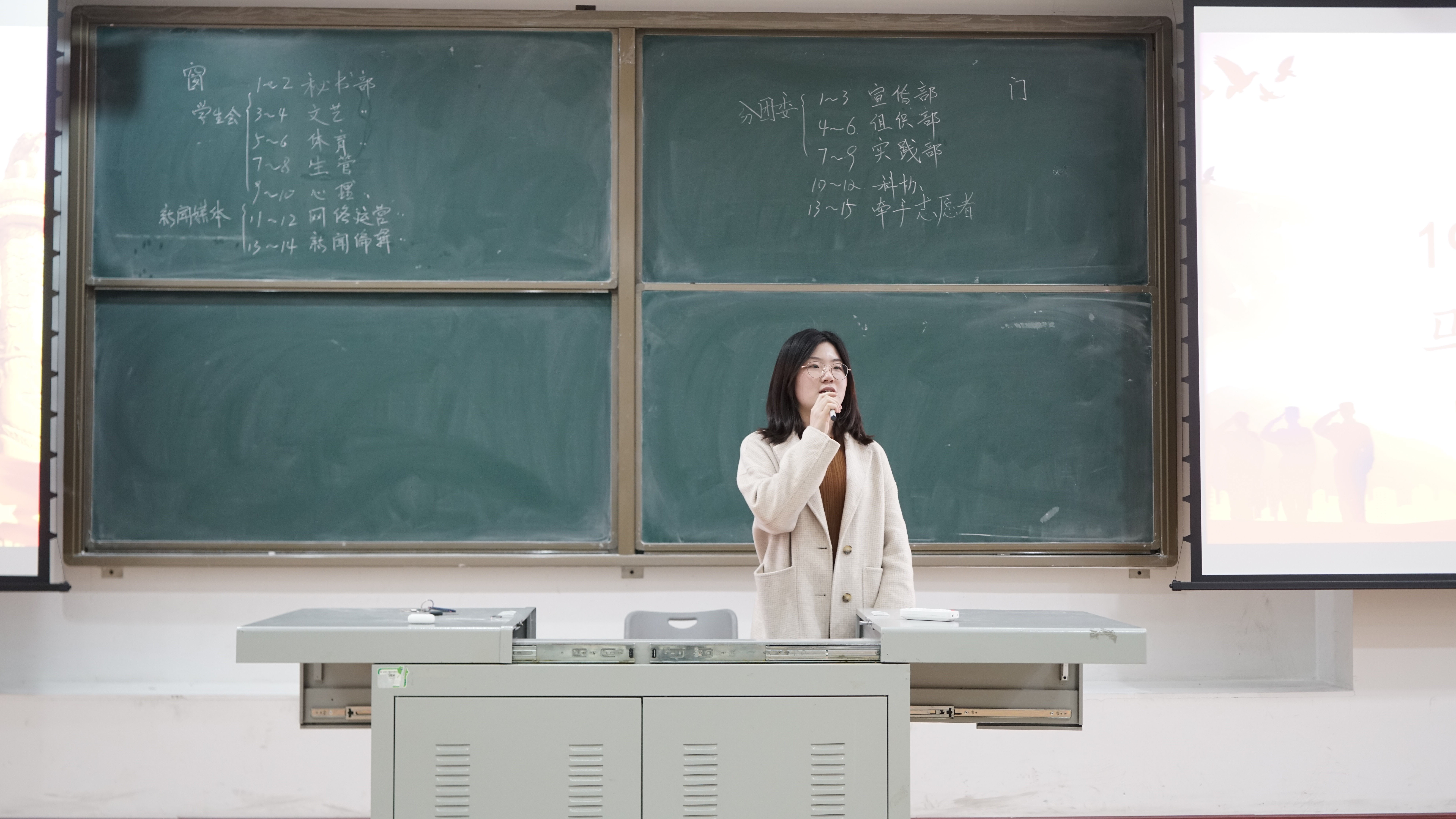 在经信教学楼第八阶梯教室召开了第十六届团学联组织纳新选拔大会。学院团委负责人马姗姗出席了本次大会,会议由学生会执行主席张雪洋同学主持。