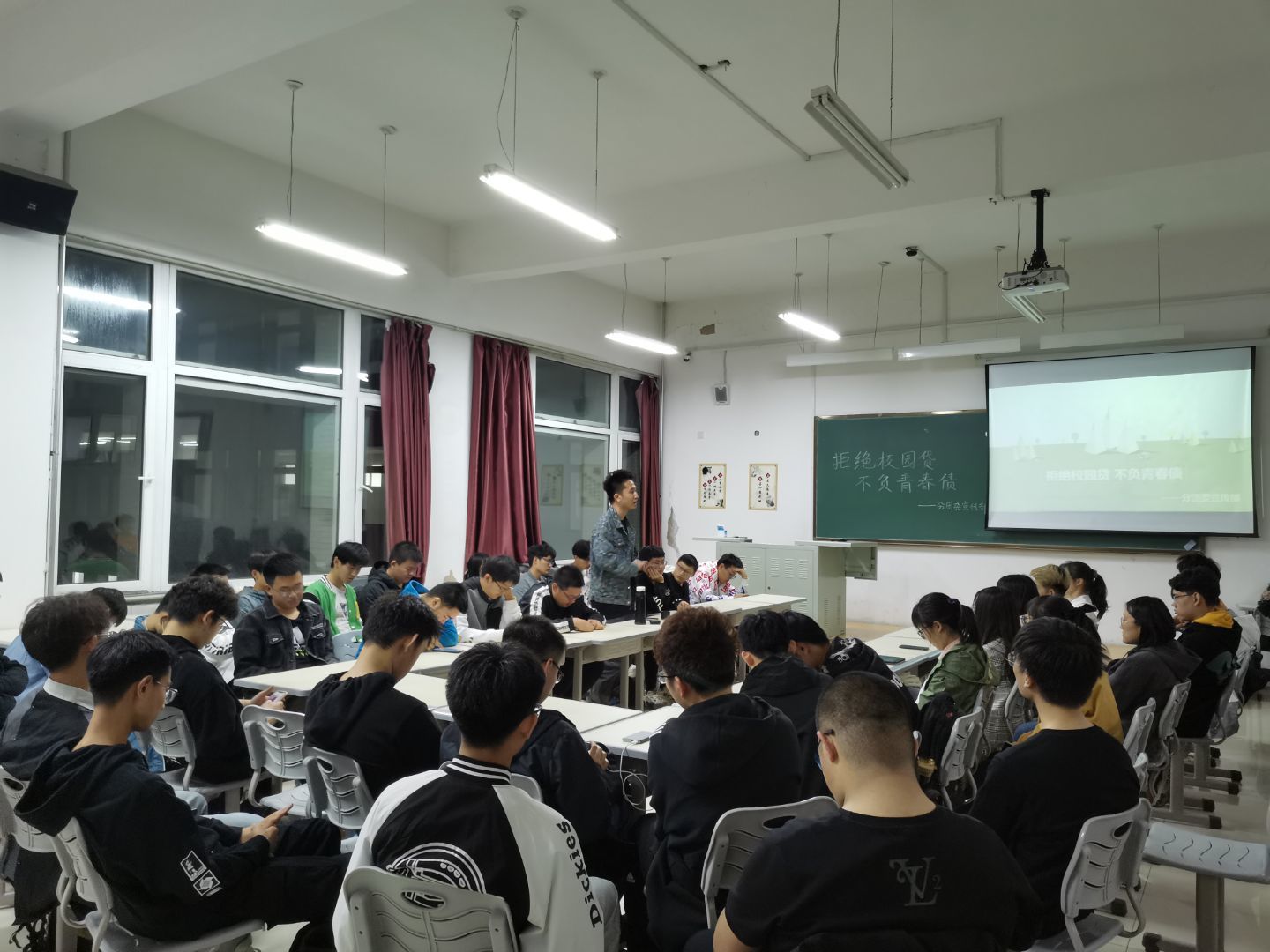 分团委宣传部于2021年4月11日晚上6:30在李四光楼举办“远离校园贷,不负青春债”活动,学院2019级、2020级学生代表参与此次活动。
