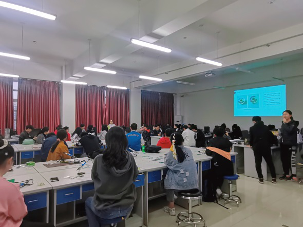 本次活动面向全校19、20级学生,由科协科技部部长程麟涵担任主讲。活动开始之前,科协成员为参与活动的同学发放了本次活动的电子器件及工具。程麟涵同学首先介绍本次活动所用器件,然后讲解焊接电路技巧以及电子琴的电路结构与实现方式,并为同学们展示了简易电子琴成品。随后在本次活动的志愿者的协助下,同学们纷纷开始动手操作。活动期间,同学们遇到问题时,在场志愿者都耐心地进行了解答。最终,同学们都完成了属于自己的作品,其均能实现电子琴功能。