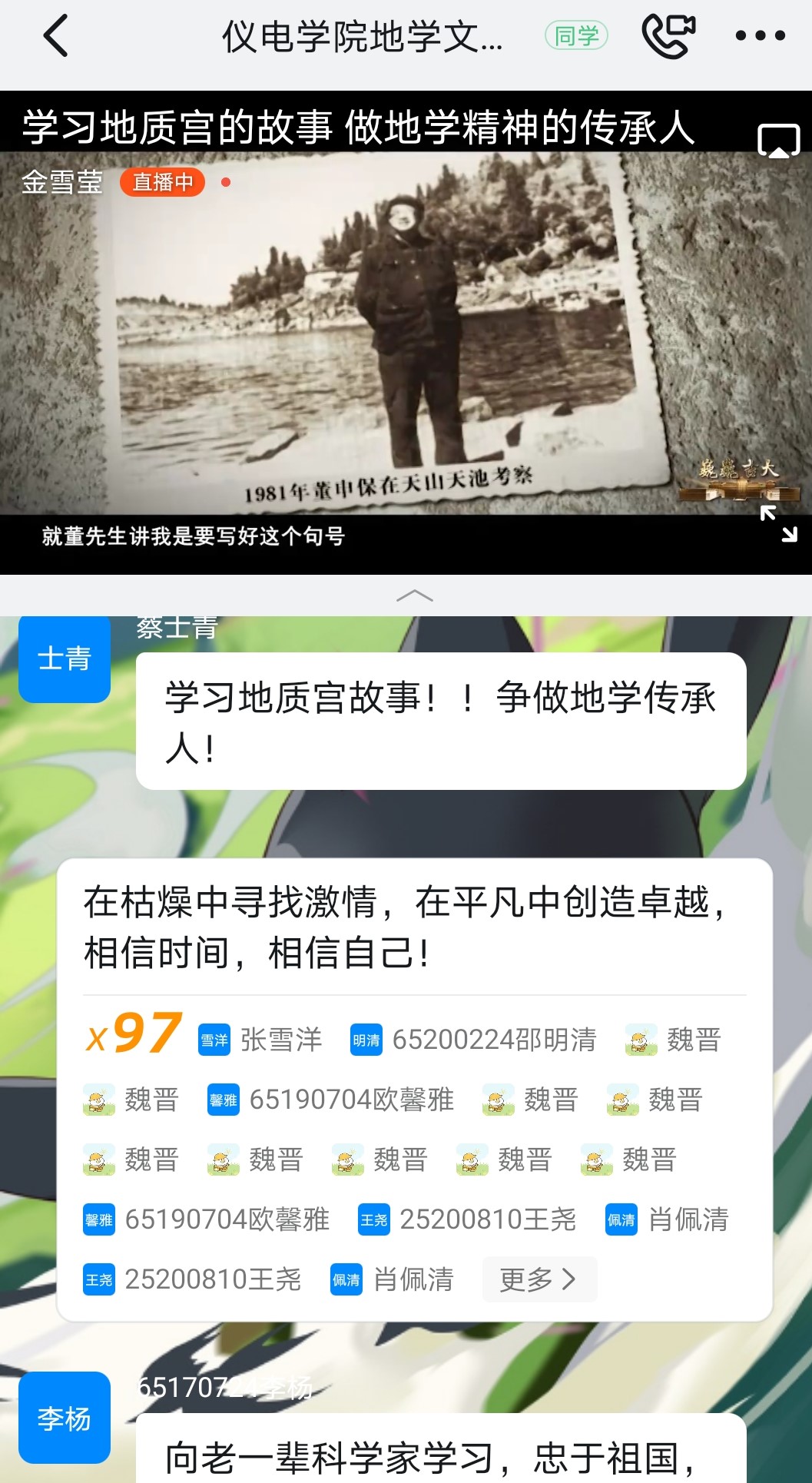 通过钉钉直播的方式,号召全院大学生共同观看纪录片《巍巍吉大》第三集《高山景行》。