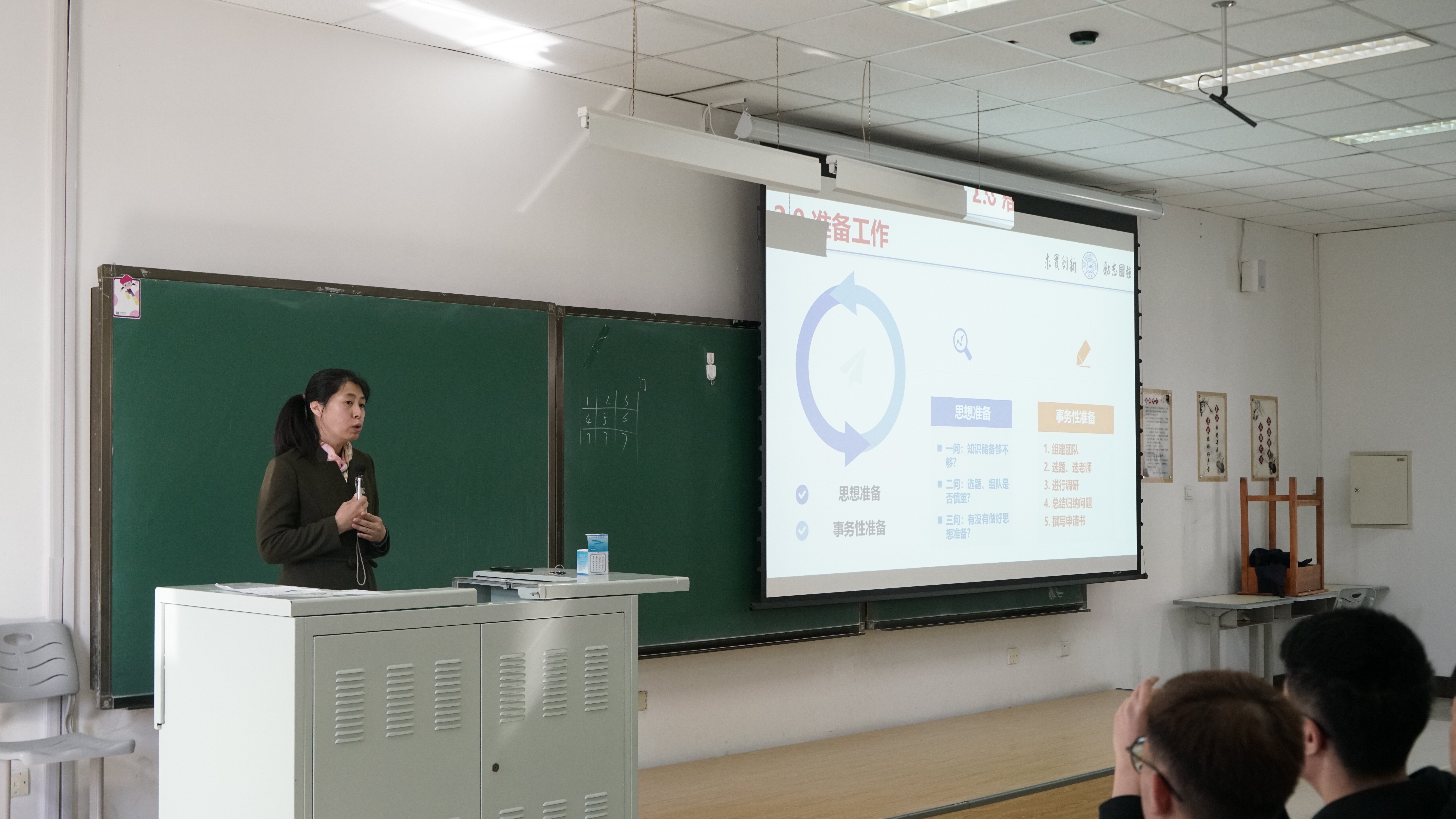 接下来,万云霞老师向同学们介绍了大创项目从开始到结束的要求和流程。在介绍一开始,万云霞老师给同学们播放了蔡元培任职北大校长时的演讲,希望借此引发同学们的思考,不要在做大创时只在乎分数,要真正的抱着科学研究的态度,抱着提升自己的目的进行大创项目的每一步。除此之外,万云霞老师还具体介绍了大创项目所需各种工作对应的时间节点,撰写各种报告时容易发生的错误,在研究过程中可能产生的各种问题以及其解决方法。最后,万云霞对同学们积极参加大创项目申报表达了期许和希冀。