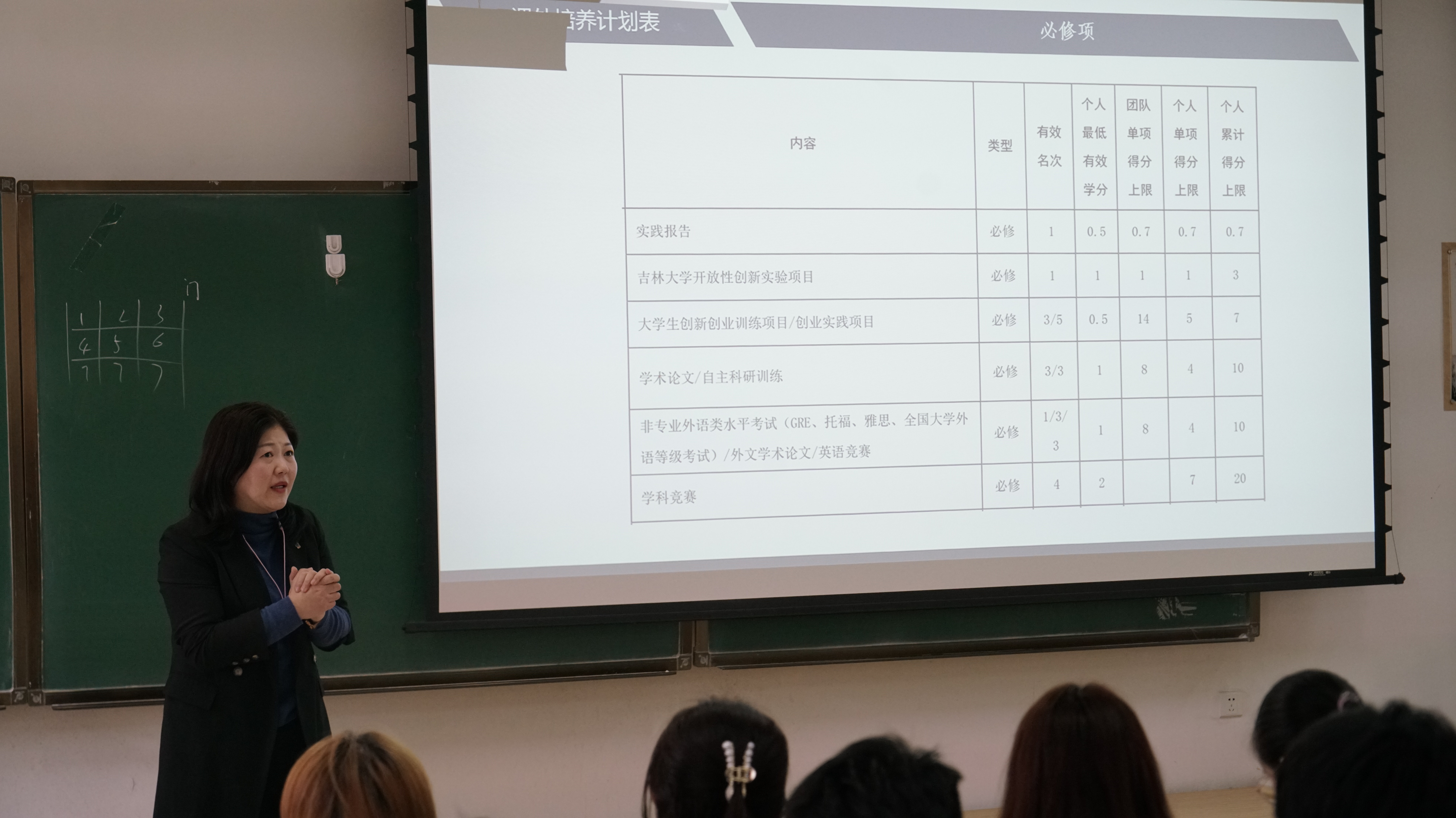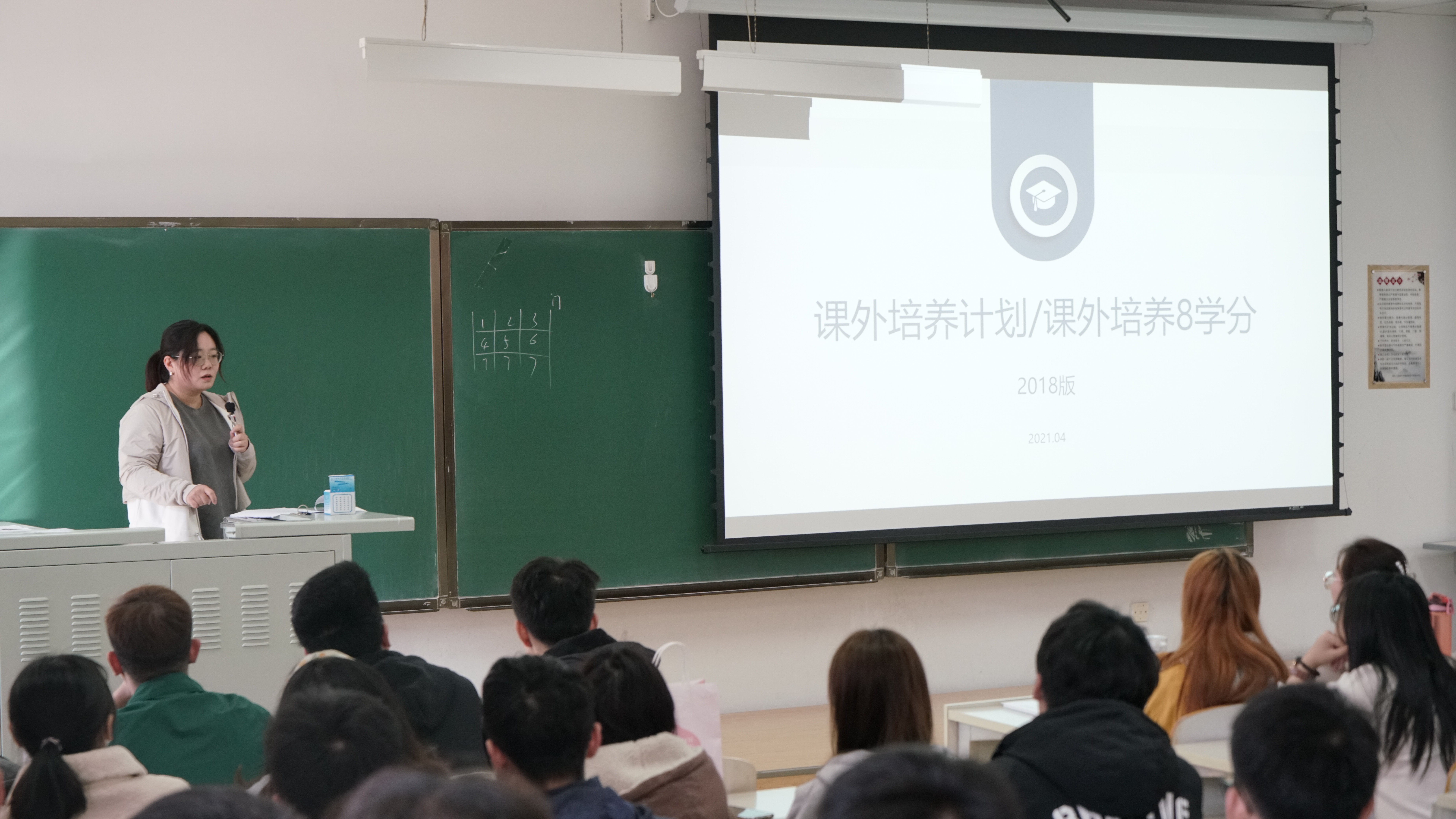 首先,千承辉老师、张莉老师结合仪电学院2018版课外培养计划逐条详细地介绍了每条学分所对应的项目以及得分的明细。在介绍的过程中老师还具体举例,向同学们介绍了每条学分设置的内在逻辑和其想要培养同学的能力,希望同学们能认真对待,在完成培养计划的过程中得到成长。