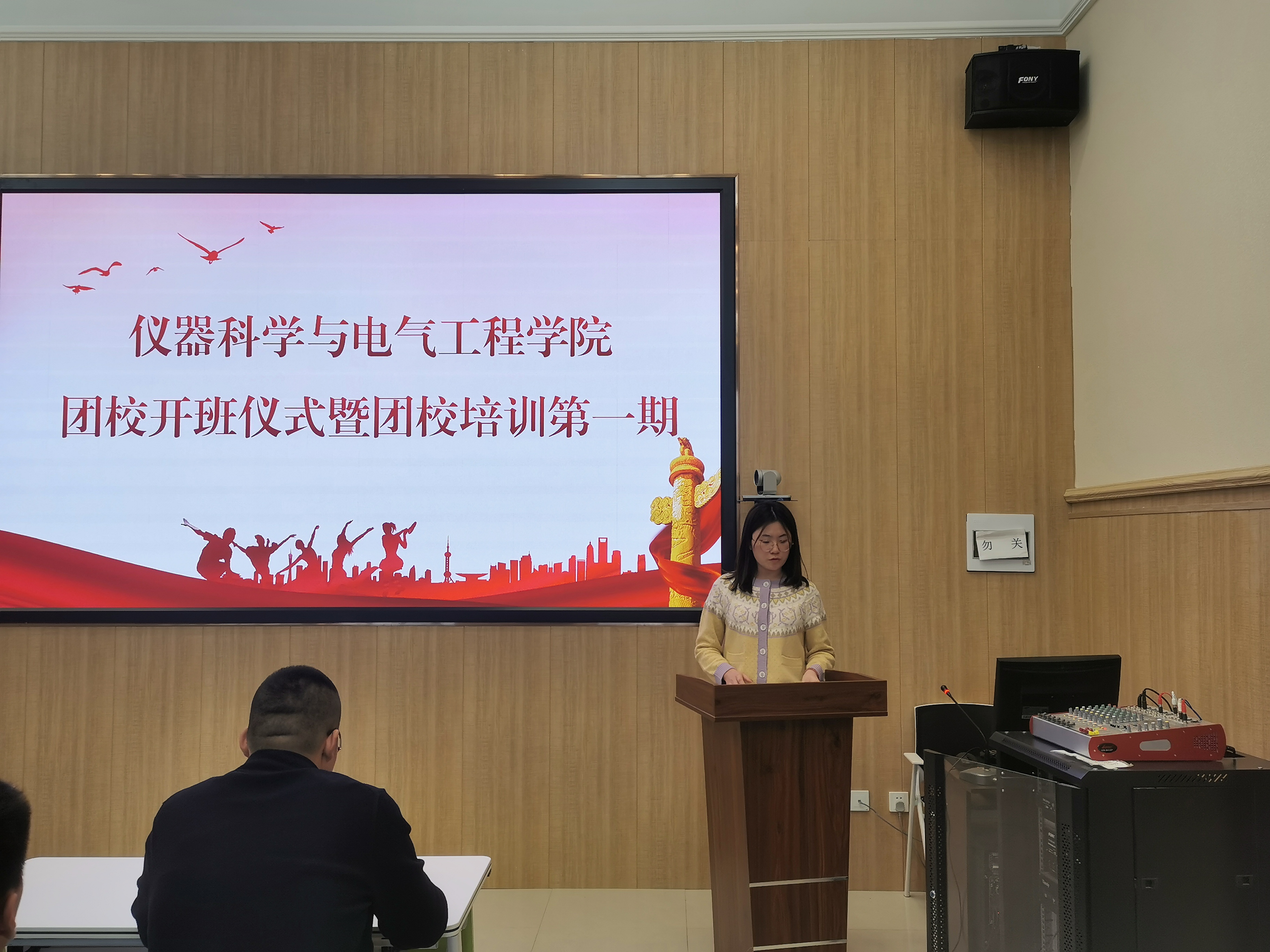 开班仪式上,马姗姗老师向与会人员介绍学院团校成立的重要意义,表示今后学院团委将以团校为主阵地,通过线上课程与线下讲座、专题学习和主题实践相结合等方式,大力开展学生骨干的思想政治、岗位职务及工作技能培训。她鼓励大家珍惜学习机会,勤于思考、勇于创新,努力提升理论水平和综合素质,作为青年中的先进集体,时刻发挥先锋模范带头作用。在与会师生的热烈掌声中,仪电学院团校正式开班。