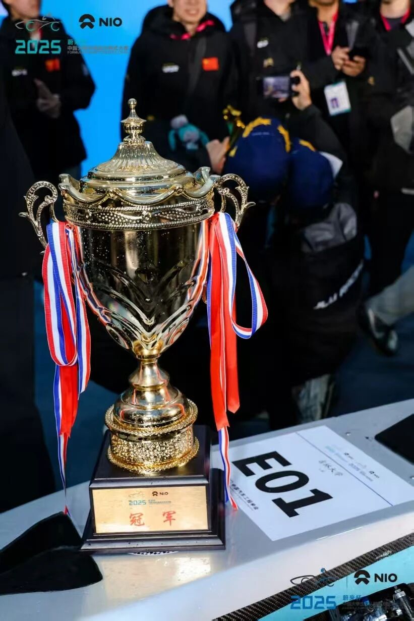 11月17日,他转战合肥,在“蔚来杯”中国大学生电动方程式大赛中,与来自74所高校的车队同场竞技。电池箱安全检查环节虽遇挑战,但他与队友紧密沟通、协同排障,展现出优秀的团队协作与问题解决能力。在设计项目决赛答辩中,面对德国技术专家,他再一次凭借科学严谨的动力系统设计流程从容应对,获得高度评价。最终,吉速电动方程式车队再度夺冠,实现全国总冠军“三连冠”。