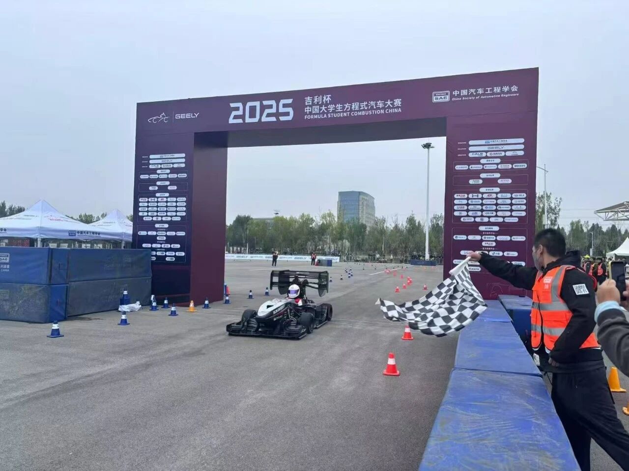 2025年10月8日,再次奔赴郑州参加2025“吉利杯”中国大学生方程式汽车大赛。针对雨战凭借扎实的专业能力,现场对赛车混合动力系统、车身稳定控制系统、扭矩分配控制系统进行特调,保证赛车在湿滑赛道的稳定性。作为车队主力车手,在其它强队接连做出强势有效圈速时,吴林阳顶住压力最终取得高速避障全场第二的好成绩。在耐久赛中,凭借精湛驾驶技术,将圈速刷新到1.06.625,做出了雨地最快单圈。