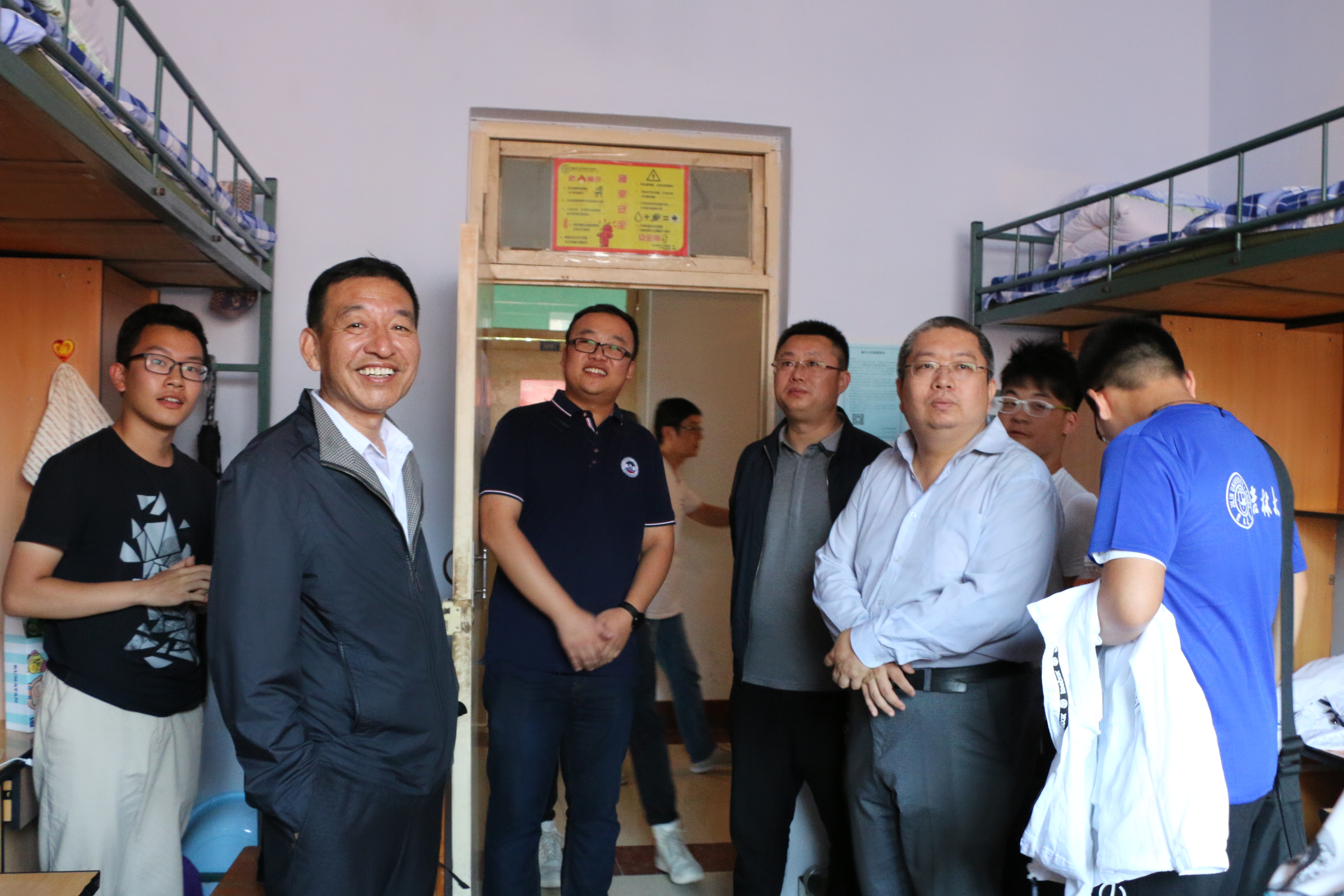 到场的我院各领导一一走访了新生寝室,与2017级新生及家长们亲切交流。他们认真询问了关于家乡生活、地域风俗等方面的问题,以及是否习惯北方的气候与饮食习惯,能否用普通话正常交流等等。学院领导们热情而亲切,面对同学及家长提出的问题,他们都一一耐心解答。在这样温馨的气氛中,新生们都表示很满意住宿条件,并且有信心很快适应大学生活。走访过程中,我院各领导不忘鼓励学生珍惜大学生活,充分利用当前学校为学生提供的资源,不断的丰富充实自己,成为祖国的栋梁之才。同时他们还嘱咐学生要学会克制,不要沉迷网络,养成良好的生活习惯,在大学生涯中努力奋斗,交出一份满意的答卷。