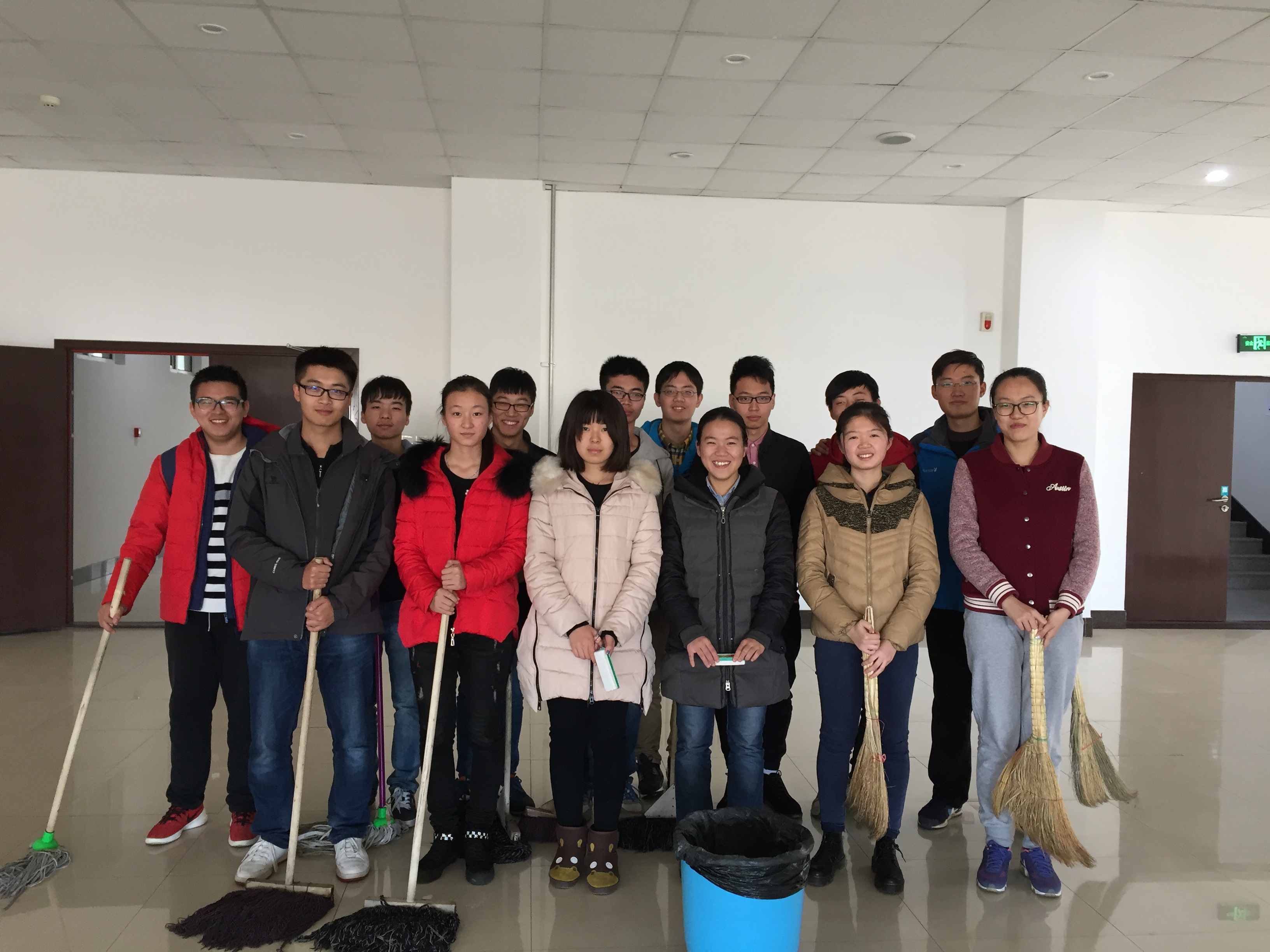 2015级的14位入党积极分子积极组织义务劳动,打扫了李四光教学楼。本次活动参与人员有马松辰、朱美意、单婉盈、冯雪、王华梁、张航铭、肖蕊、张函嘉、孟德壮、杨思恩、张天龙、周志鹏、谭济昕、龚善超。