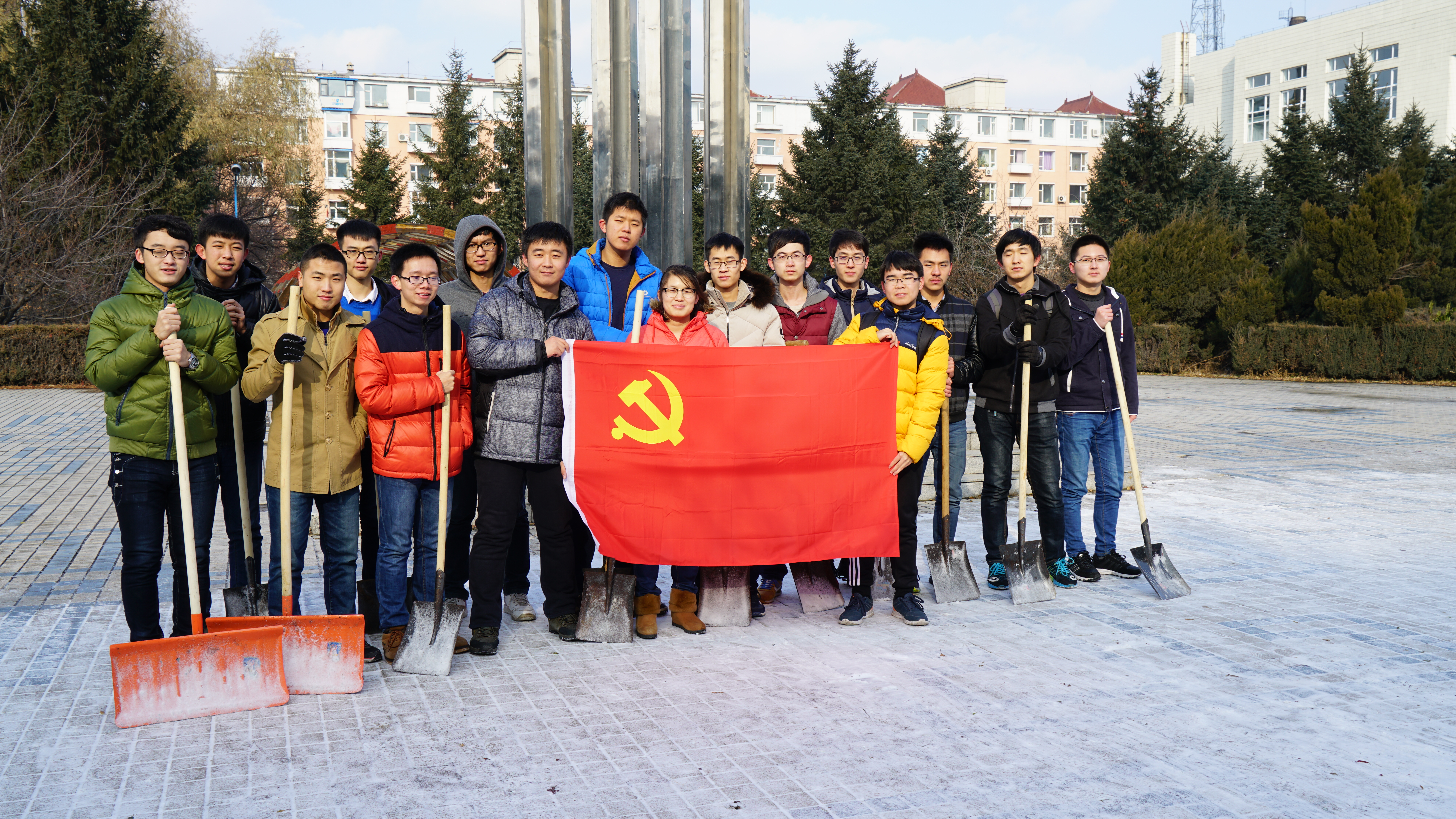 为进一步树立党员先锋模范作用,践行社会主义核心价值观,使党员同志更好的全心全意为人民服务。2016年11月11日,我院党员在吉林大学朝阳校区开展了义务清雪活动。
