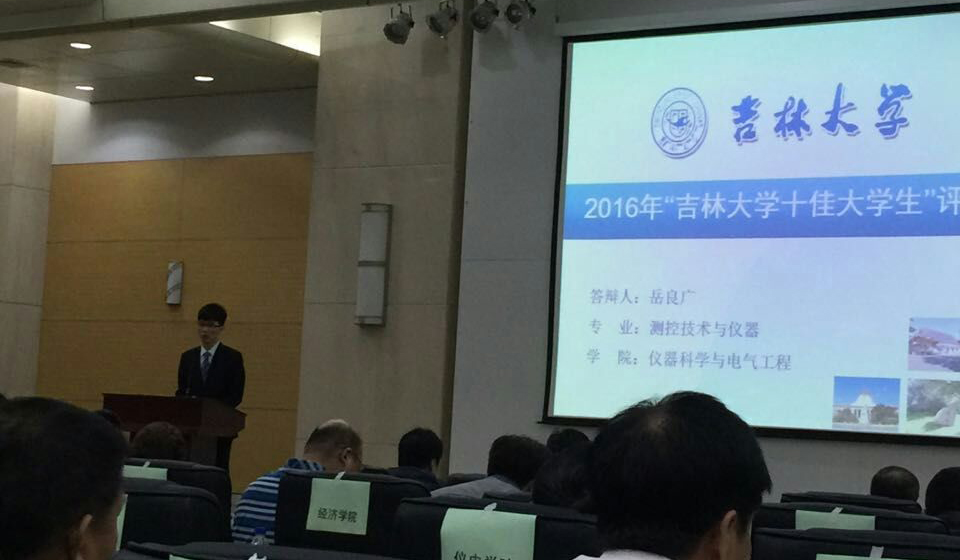 “人比山高,脚比路长”,他连续两年获得国家励志奖学金,南航励学金,两次获得东荣奖学金,连续两年被评为校级优秀学生,校级优秀学生干部,目前已被保送至吉林大学进行本硕博连读培养——他就是吉林大学2016年“十佳大学生”称号获得者岳良广。