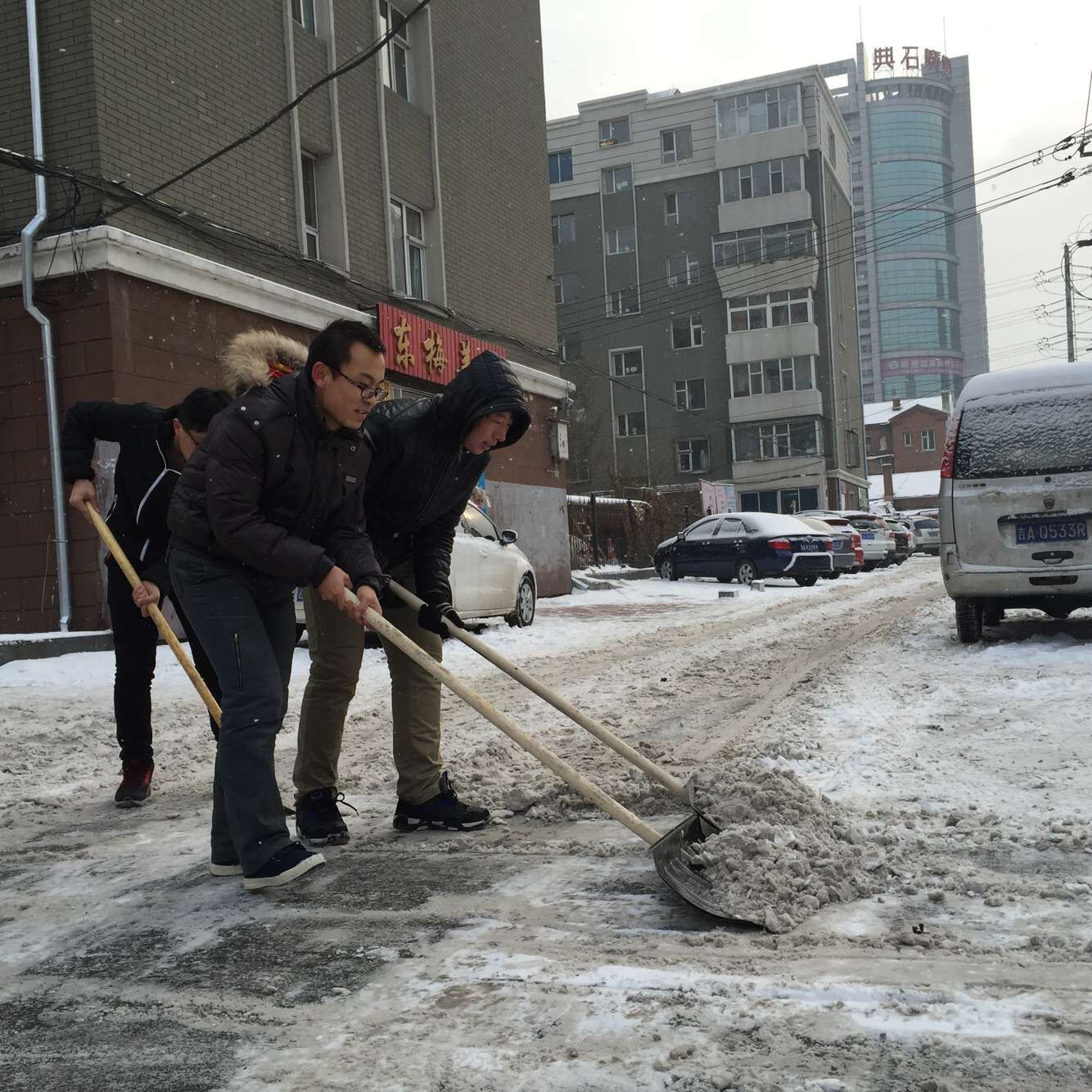 团委牵手志愿者协会于 2015年12月14日举行了清河街道志愿扫雪活动。