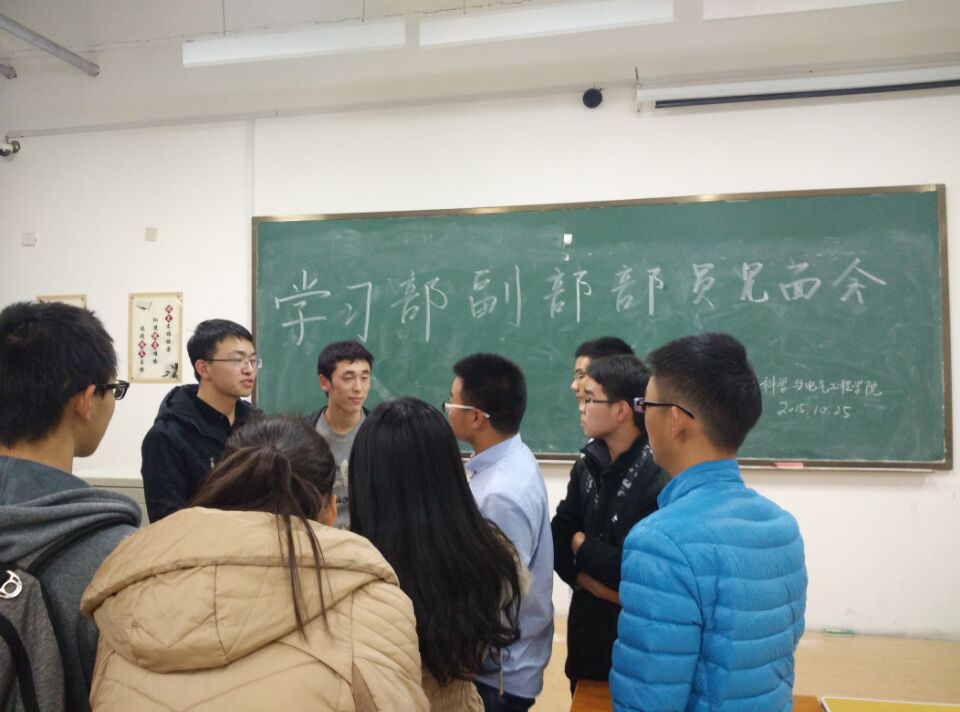 在前卫南区李四光楼110教室举行全体部员见面会,会议由学习部部长赵成主持,学习部副部和全体部员参加会议。