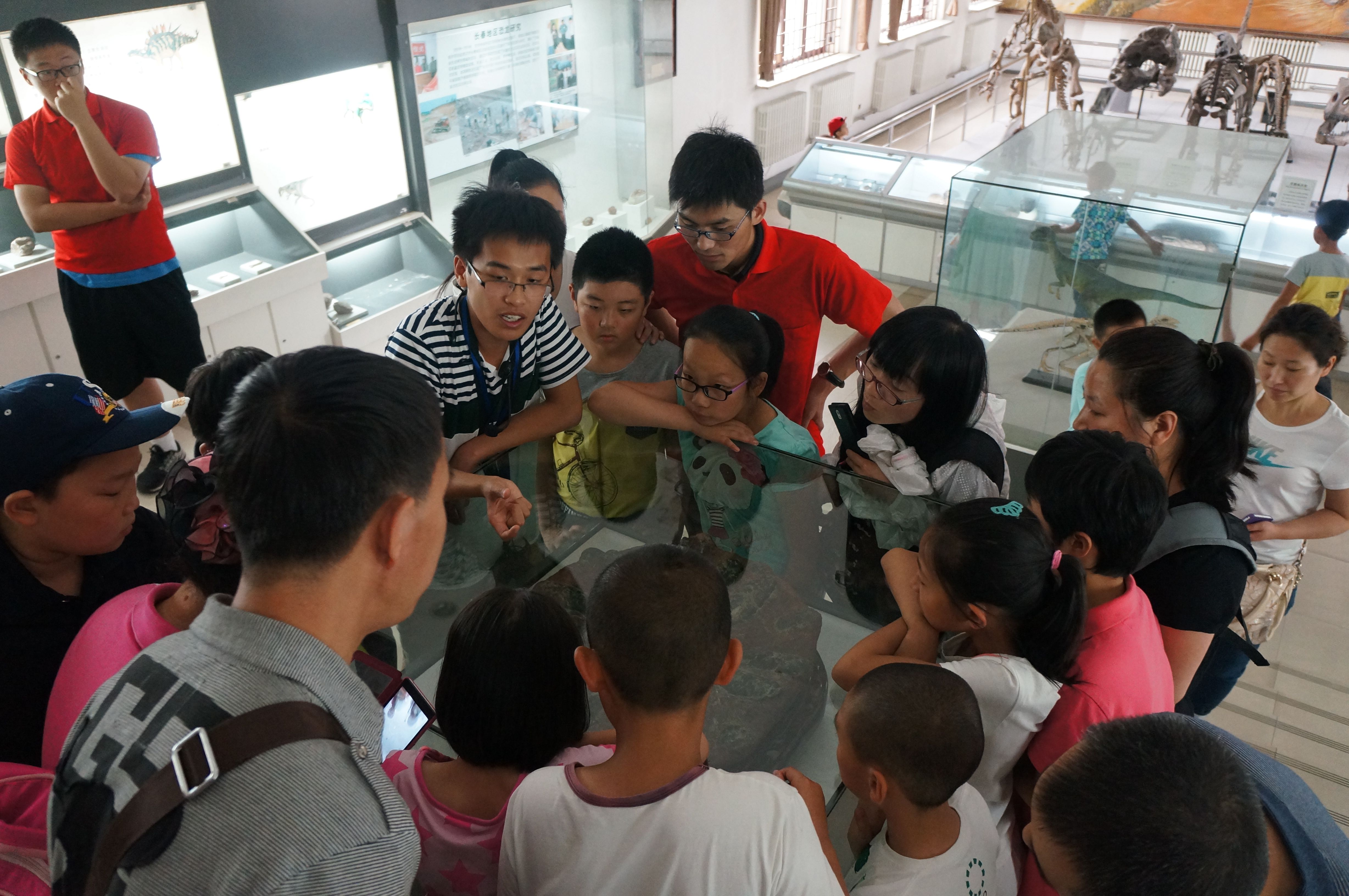 上午10点,来自安达小学的38名小朋友和他们的家长来到了吉林大学朝阳校区,早已等候在地质宫门前的我院青年志愿者们热情地接待了他们,并对同学们的到来表示热烈地欢迎。在志愿者的带领下,大家开始了“双手托起希望,周末梦圆大学”的第一项活动----参观地质宫博物馆。吉林大学地质博物馆始建于1952年,以藏品丰富、精品荟萃、特色鲜明享誉中外,是我国乃至亚洲著名的地质博物馆之一,被命名为“全国科普教育基地”和“全国青少年科技教育基地”。博物馆分科普厅和恐龙厅,科普厅设有奇石展区、宝玉石展区、古生物展区及地学科普知识展区,这里有丰富多彩的天然宝玉石原料及加工制成的半成品,这些宝玉石美观、耐久、稀少,同学们一边感叹大自然的鬼斧神工,一边惊讶地质世界的丰富多彩。恐龙厅展有多具巨型恐龙骨架化石及珍贵的恐龙蛋、恐龙脚印化石等,孩子们看到远古恐龙巨大的化石不禁惊叹连连,仿佛置身于奇幻的恐龙世界。参观后,孩子们纷纷表示此次参观为他们打开了认识地质世界的大门,更让他们体会到了科学世界的奇妙与精彩。
