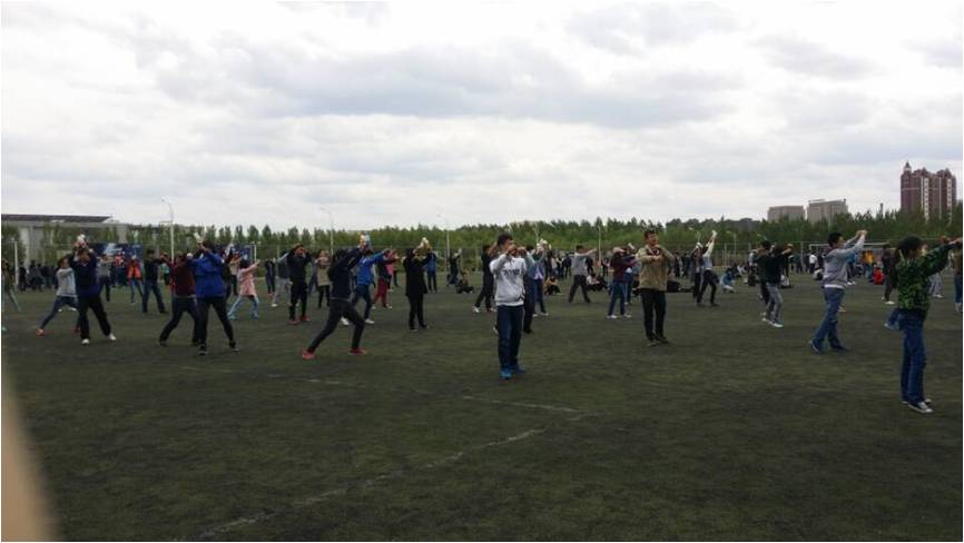为使大家能更好地掌握大舞,朝阳校区五个学院的学生每天清早就奔赴到训练场地,进行热火朝天的训练,每次训练持续一个多小时,同学们训练的极其认真,在朝阳下挥洒自己的汗水。学院领导非常重视这次活动,每天都尽早来到体育场观看同学们的训练,并对大舞团体训练进行指导,大舞团体项目展示了地学部学生的风采,相信其一定会是运动会上最靓丽的风景线。
