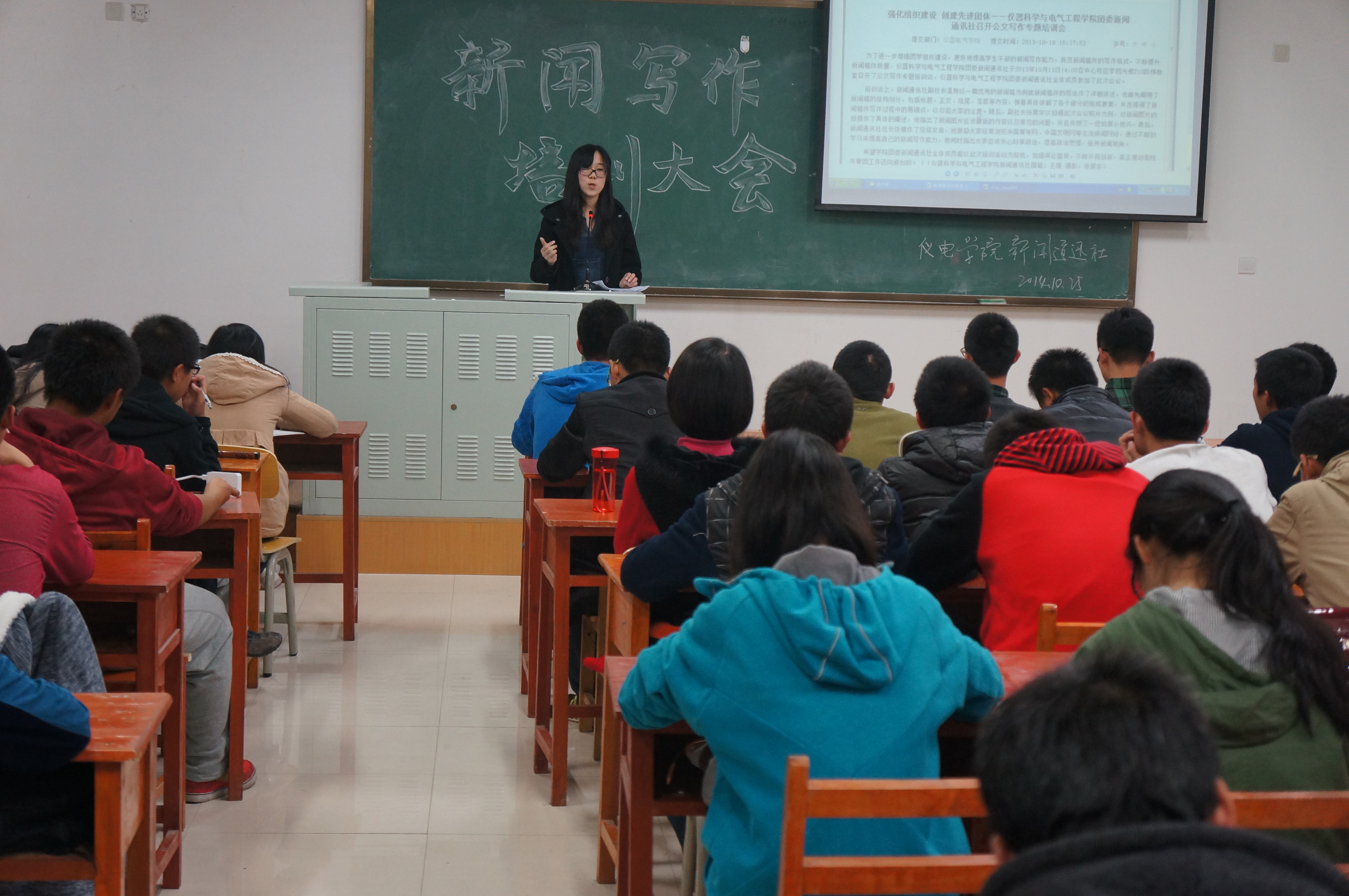 团委新闻通讯社于10月28日晚在中心校区李四光318室开展了新闻写作培训活动,学院团委新闻通讯社以及大一大二学生会全体成员参加了本次培训会。