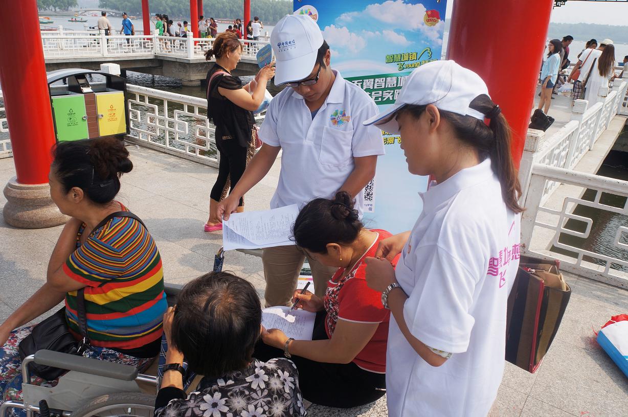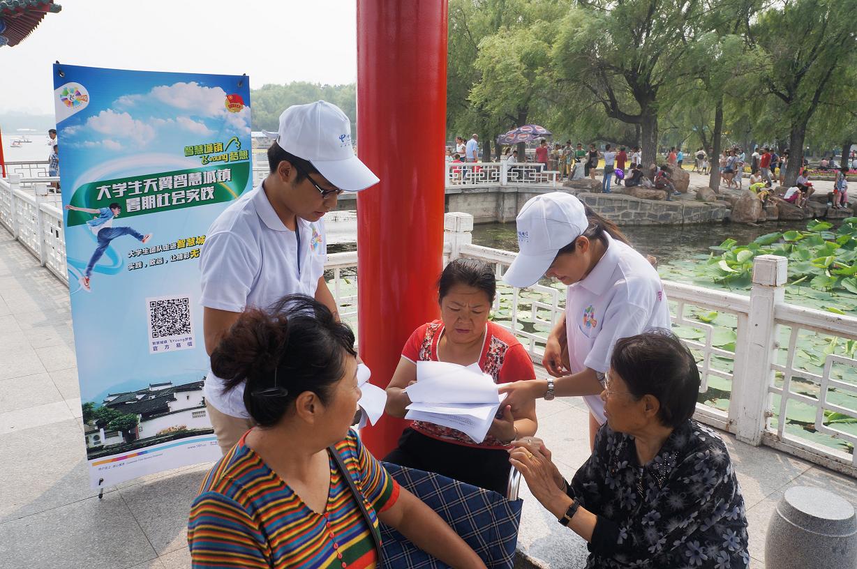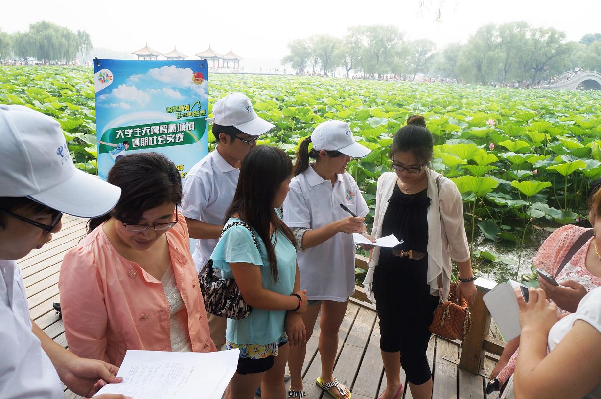 此次专项调研活动由共青团中央联合中国电信集团共同发起,旨在响应党中央建设社会主义和谐社会的号召,加强大学生对基层社会生活的了解,通过实地调研、体验城市信息化建设的现状,分析信息化发展的趋势及前景。按照调研进度安排,“东北情•振兴梦”大学生科技调研实践团主要成员于8月8日上午前往长春市南湖公园开展专项调研活动。在南湖公园各主要景点,实践团成员对游客们开展了问卷调查。问卷内容主要包括被调查人的基本情况、了解及使用信息设施的途径、信息设施在生活生产的运用情况及对信息化建设的想法和建议。实践团成员热情耐心协助被调查游客们完成调查问卷相关内容。经过两个多小时的辛勤工作,当天的调研任务顺利结束。