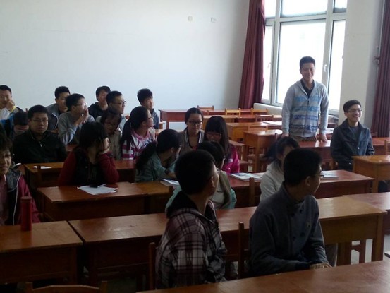 此次班会由二班团支书、心理委员策划主持,以游戏为主要活动形式,旨在促进大家的沟通,增强集体荣誉感。班会开始之前,全班被随机分成5个小组并各选组长一名。第一项活动为:心理游戏——“穿越雷区”,每组派出2名同学,一名同学在蒙住眼睛的情况下,根据队友的指挥通过障碍区,比赛制调动了同学们的积极性,现场气氛十分活跃。接下来是“你说我听”环节,同学们坐下来诉说心事,进行了一场心贴心的交流。