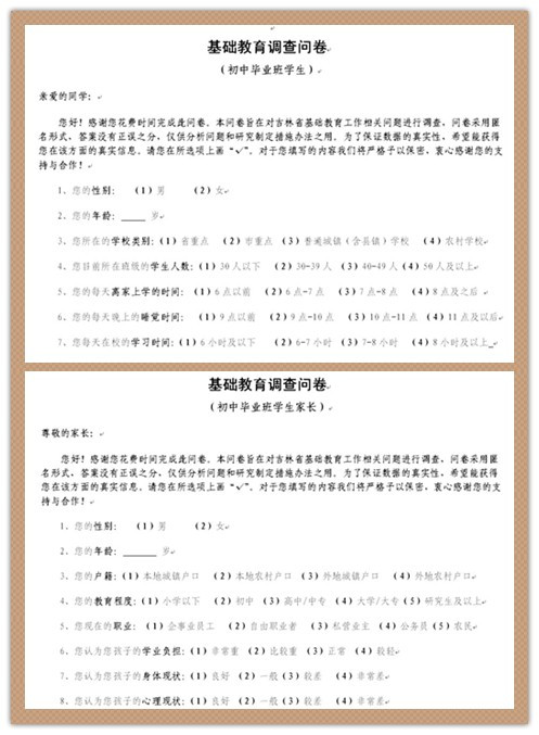 此次专题调研是在吉林省人民政府办公厅信息处组织下开展的,主要针对社会各界关于基础教育特别关切的问题,如择校问题、收费问题、补课问题、学生身体素质问题、学生综合素质问题、教师教学水平问题、中考体制问题等开展专题调研,旨在通过调查研究制定下一步促进全省基础教育均衡发展、科学发展的措施和办法。本次调研工作由吉林省政府办公厅信息处牵头组织,省教育厅、省监察厅、省审计厅、省物价局、省政府发展研究中心、长春市政府办公厅等职能部门配合开展,主要围绕初中毕业班展开。日本女优