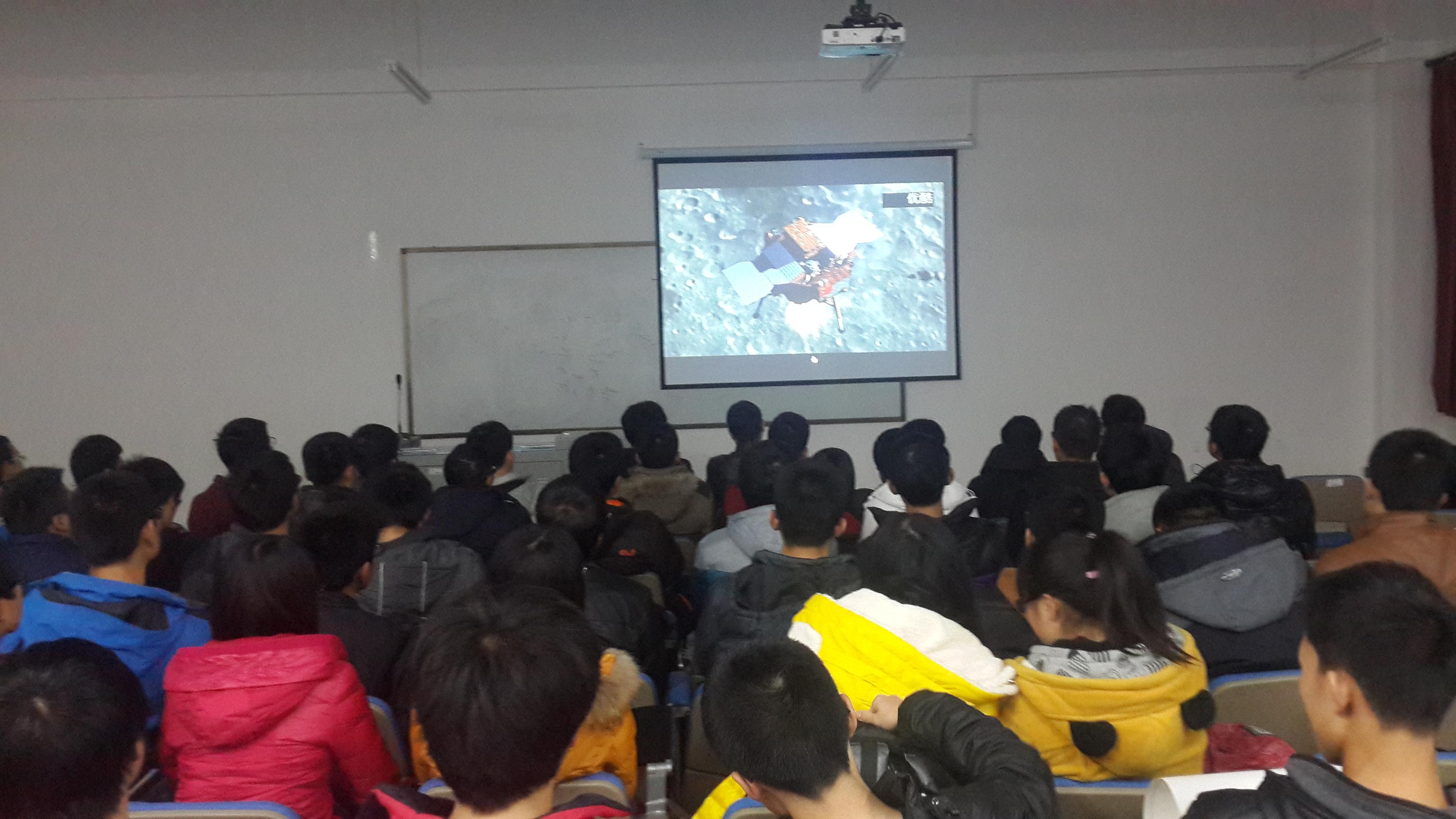 首先,主持人感谢到场各位师生,随后以一部三维动画作为开场白——2013年12月02日,在西昌卫星发射中心,伴随一声巨响,嫦娥三号探月卫星乘坐长征三号乙级火箭拔地而起直指苍穹。动画介绍了嫦娥三号的飞行轨迹及登月计划,着重介绍月球车的软着陆及探月工作,生动又形象的带领大家一起走上探月之旅。就在众人感叹科技伟大之时,画面出现了一位正襟危坐,认真工作的航天工作人员,而他,就是此次学习报告会的主角——杨加东。看着图片,主持人开始对这位校友进行介绍,来自保山市施甸县的杨加东,2005年6月从吉林大学电气工程专业毕业,现为西昌发测站箭体动力室工程师。常规动力作为发射场上最重要的分系统之一,主要负责火箭Ⅰ级、Ⅱ级及助推级动力系统的靶场测试、常规推进剂加注和发射工作。杨加东就是常规动力系统所有工作的统筹协调和组织指挥者。杨加东走上指挥员岗位的时间不长,但他积极进取、严谨细致的品质值得信赖。听完主持人的介绍,同学们脸上流露出自豪与敬佩,他们自豪有这么一位助力国家发展的优秀学长,又深深地敬佩他的成就,同时反省自己,展望未来。最后,蔡印老师上台总结,他补充了杨家东学长曾经在吉大时的生活与学习情况,使大家更加亲切与真实地了解这位楷模,同时,蔡印老师和大家畅谈人生价值与规划,他表达了对在座每位学子的期望也送上自己衷心的祝福,会议在一片热烈的掌声中落下帷幕。
