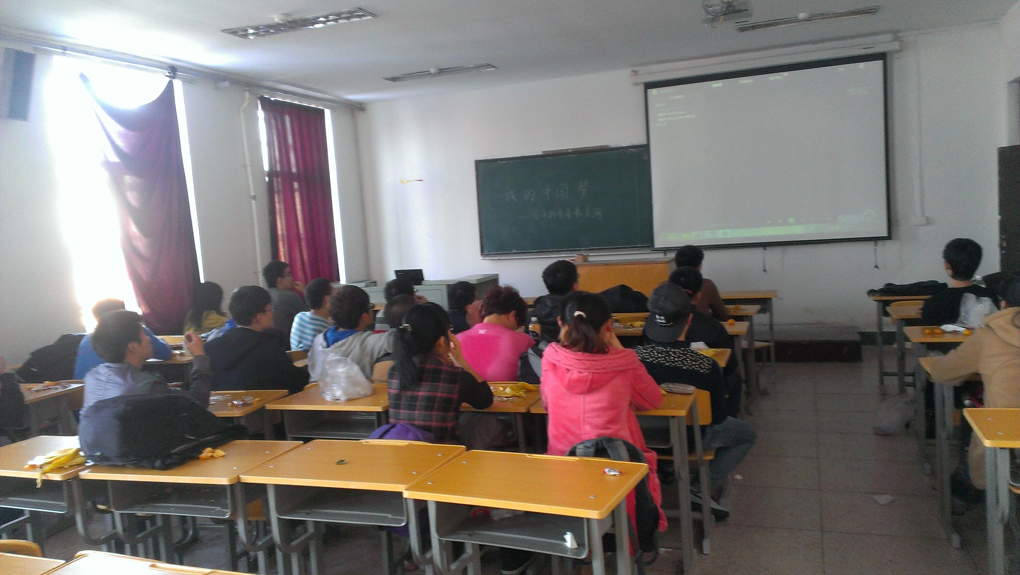 主题班会于13:30准时开始,班会以“我的中国——梦奋斗的青春最美丽”为中心,密切联系同学实际,围绕发生在同学身边以及自身上的故事,各自阐述了自己的看法。大家首先观看了“靳学兵沉迷网络”事件报道视频,剖析了“大学生沉迷网络游戏耽误大学学业”的反面案例,热烈讨论了如何为自己的理想去付出、努力,改变自己身上的不足,珍惜自己拥有的学习机会,在人生最宝贵的青春岁月里留下值得回忆的日子。大家纷纷表示,不会让自己的梦想仅仅像流星在空中划过一刻的美丽,要通过自己不懈的努力,给自己的生活带来光明,带来温暖;没有人能够阻止自己的理想,纵使失败依然有重头再来的勇气;青春的标签是不畏挫折、敢于挑战,而不是呆滞木讷、畏手畏脚,一切唯命是从、无所作为。最后,班级团支书马云峰同学总结道:当今激烈的社会竞争想要脱颖而出,青年必须有一技之长,必须有坚定不移的认识理想,因为有时候一个正确的选择比奋斗本身更重要,希望大家需要拥有自己的精彩梦想,谱写自己的不悔人生……