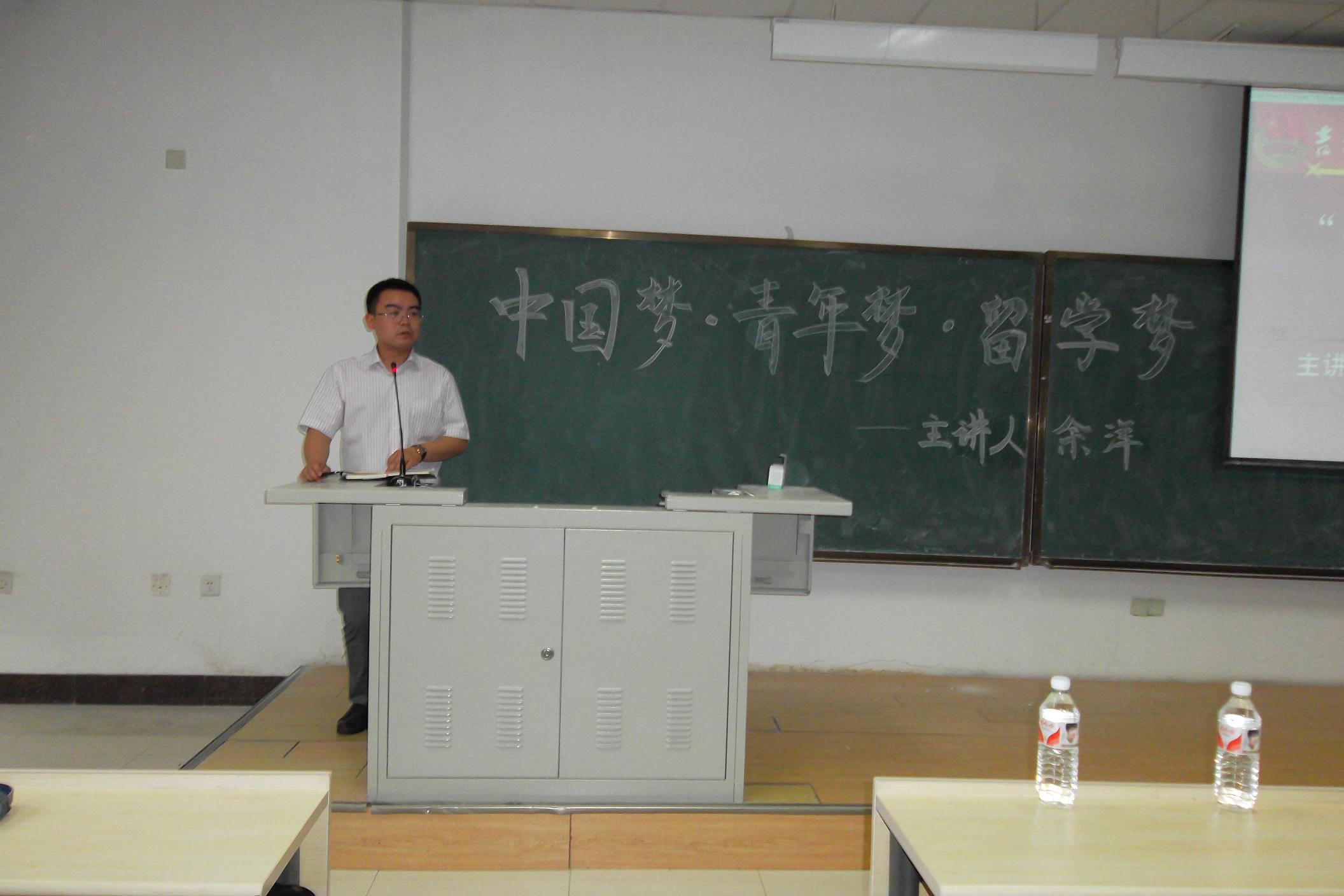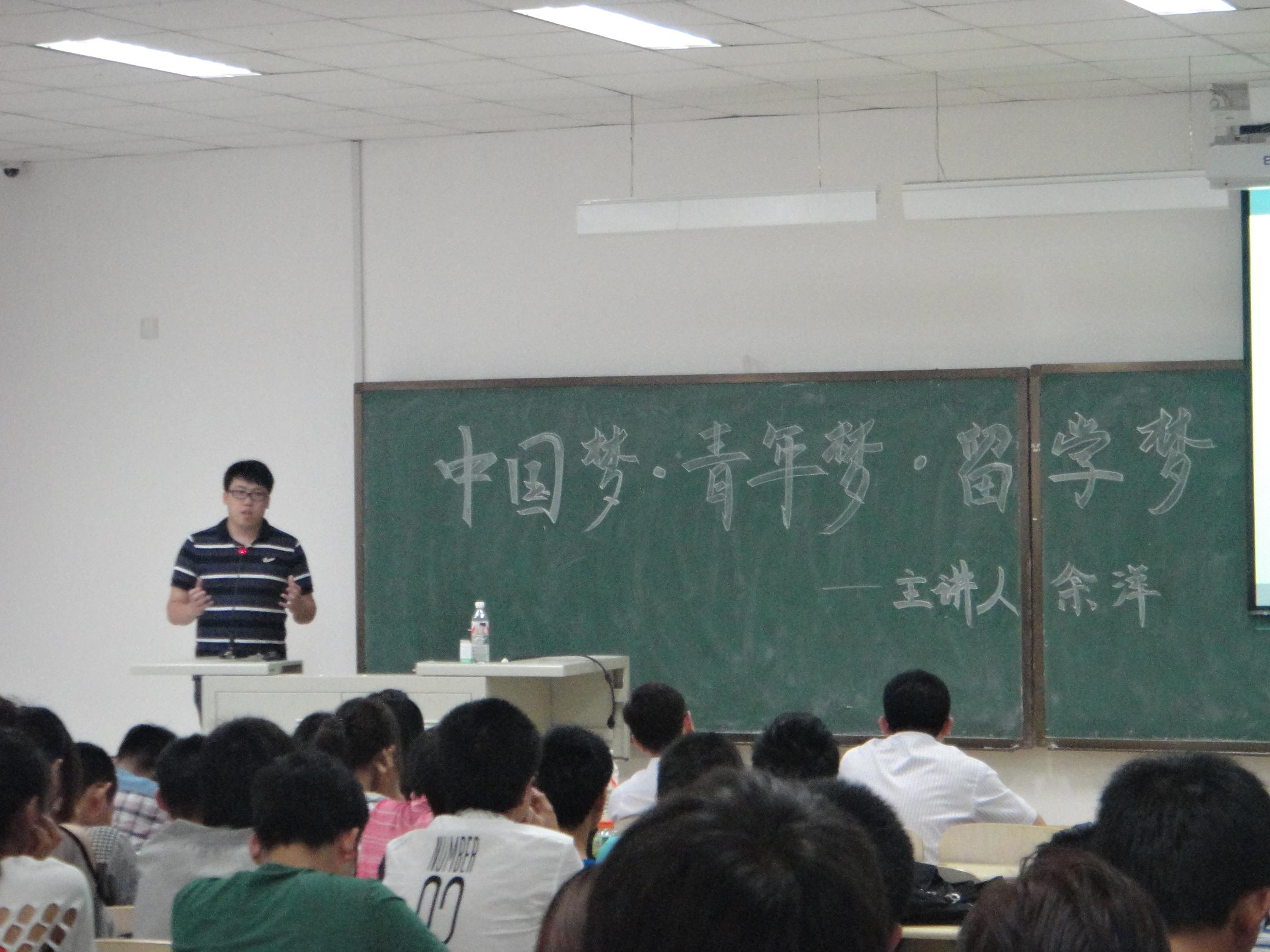 在讲座上,余洋同学热情真诚地与学弟学妹们就国外研究生申请以及大学学习生活规划两方面问题进行了交流和分享。针对目前不少同学有出国留学的想法和计划的情况,余洋就申请国外研究生的具体流程进行了详细讲解,具体从决定、考试、选校、申请、递交材料、签证、中介以及关于出国的误区进行了说明。他强调大家要清楚认识出国的意义其实是“自身的投资”,是为了未来更好地奋斗;为了生动具体地讲解留学申请过程,余洋还“独具匠心”地以网络申请世界著名的哈佛大学流程为例,为大家进行了具体演示。在讲座中,余洋始终强调英语学习和专业学习的重要性,并反复强调“奋斗”精神对青年的重要性,他鼓励大家在大学期间要坚定目标、努力学习、认真钻研、不断创新。此外,余洋结合自身实际为大家介绍了国外研究生培养体制与国内的差别。最后,他鼓励大家树立明确的学习目标并坚持不懈地为之奋斗,勉励大家要珍惜大学生活,培养自己的爱好,努力学习,为自己的“成才梦”和伟大的“中国梦”而不懈奋斗。整场讲座,余洋用亲近平和而又不失幽默的语气娓娓道来,其精彩的讲解赢得了在场同学阵阵热烈的掌声。最后,朱宇对整场讲座进行了总结,在肯定余洋同学所取得优秀成绩的同时,朱宇对他真诚耐心地为学弟学妹们答疑解惑、分享经验表达了感谢。朱宇同时指出,青年学生不应只是幻想未来,应该在树立个人理想的基础上,拥有伟大的梦想,因为梦想比理想更加远大而神圣;当代青年作为未来祖国建设和发展的接班人,应该培养“胸怀天下、敢于担当”的品质,努力将个人成才梦想融于到“中国梦”的伟大实践进程中,并为之坚持不懈、努力奋斗。