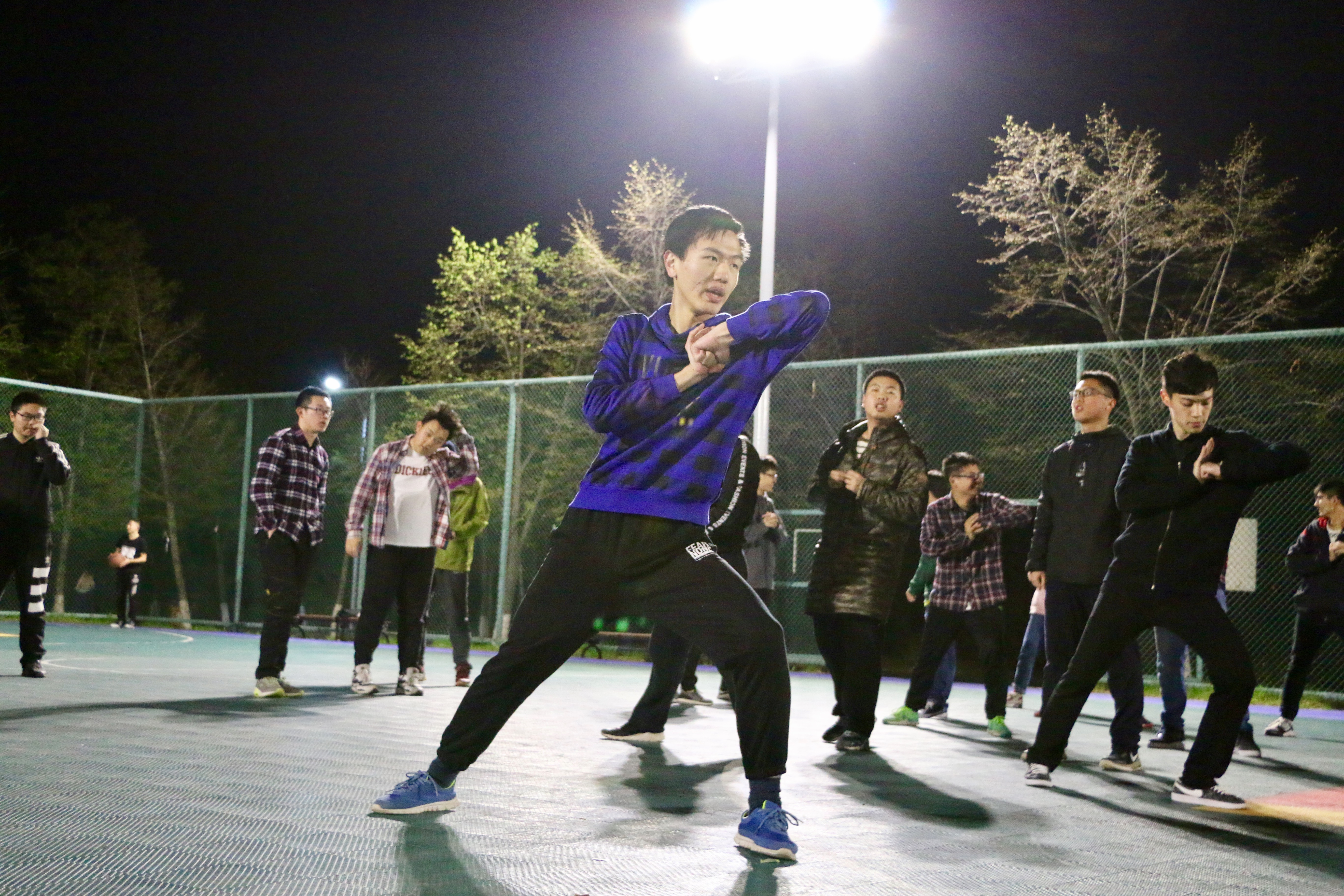 于2017年4月27日晚9:20在体育馆东侧篮球场展开三路长拳的训练工作。