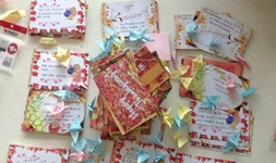 为体现感恩主题,志愿者们采用了写感恩节卡片的方式,在学校的基础园食堂、体育馆北门、新食堂正门等地点热情的引导过往的同学们表达出对自己想感谢的人的感激之情。同学们对此也纷纷做出了回应:有对父母养育之恩的感激;对宿舍、食堂、教学楼内管理人员辛劳付出的感激;对建筑工人、环卫工人、巡警等工作人员默默付出的感激;对送餐叔叔、邮递员、超市等小卖店里贴心人员的感激;对兢兢业业、认真负责的老师们的感激……一张张携着同学们澎湃内心的绚丽卡片成了这个寒冬最温暖的颜色。活动过后,志愿者们又认真耐心的将卡片分类,并送它们去它们该到达的地方。展板上的各种卡片,瑟瑟寒风中奔走的身影,成为吉林大学校园里最美丽的一抹风景。而送到卡片的被感激人脸上的笑容更是让志愿者们心中倍感温暖,如画的笑靥展现在每一个人的脸上,这也是感恩节最大的收获。