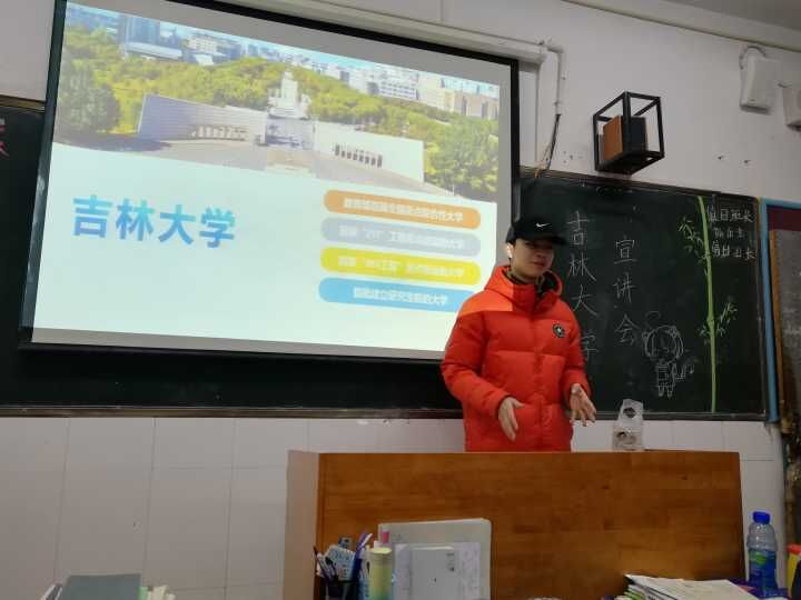 在宣讲活动中,赵子祎同学首先播放吉林大学的宣传视频,通过画面展示吉林大学优美的自然风光与浓厚的学术氛围。再通过宣传手册和精心准备的PPT让得同学们了解吉林大学的相关政策,并详细介绍了吉林大学的专业设置、师资力量和优势学科等内容,使得同学们对吉林大学有更加客观具体的认识。最后让同学们对宣讲的同学进行提问,旨在帮助同学们解决在报考中存在的误区与迷茫,坚定信念。同时与同学们交流了学习经验,和同学们分享了自己在备考时的心得体会,希望对处于关键时刻的高三学子们有所帮助,鼓励大家要对未来充满信心,积极备考。在宣讲活动结束后,还给同学们分发了吉林大学书签,希望同学们更加用心地复习看书,考上自己理想的大学。