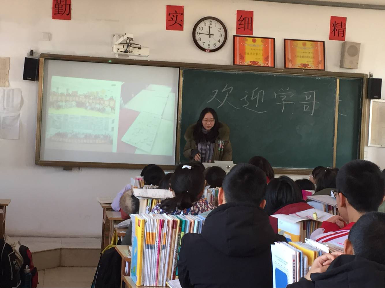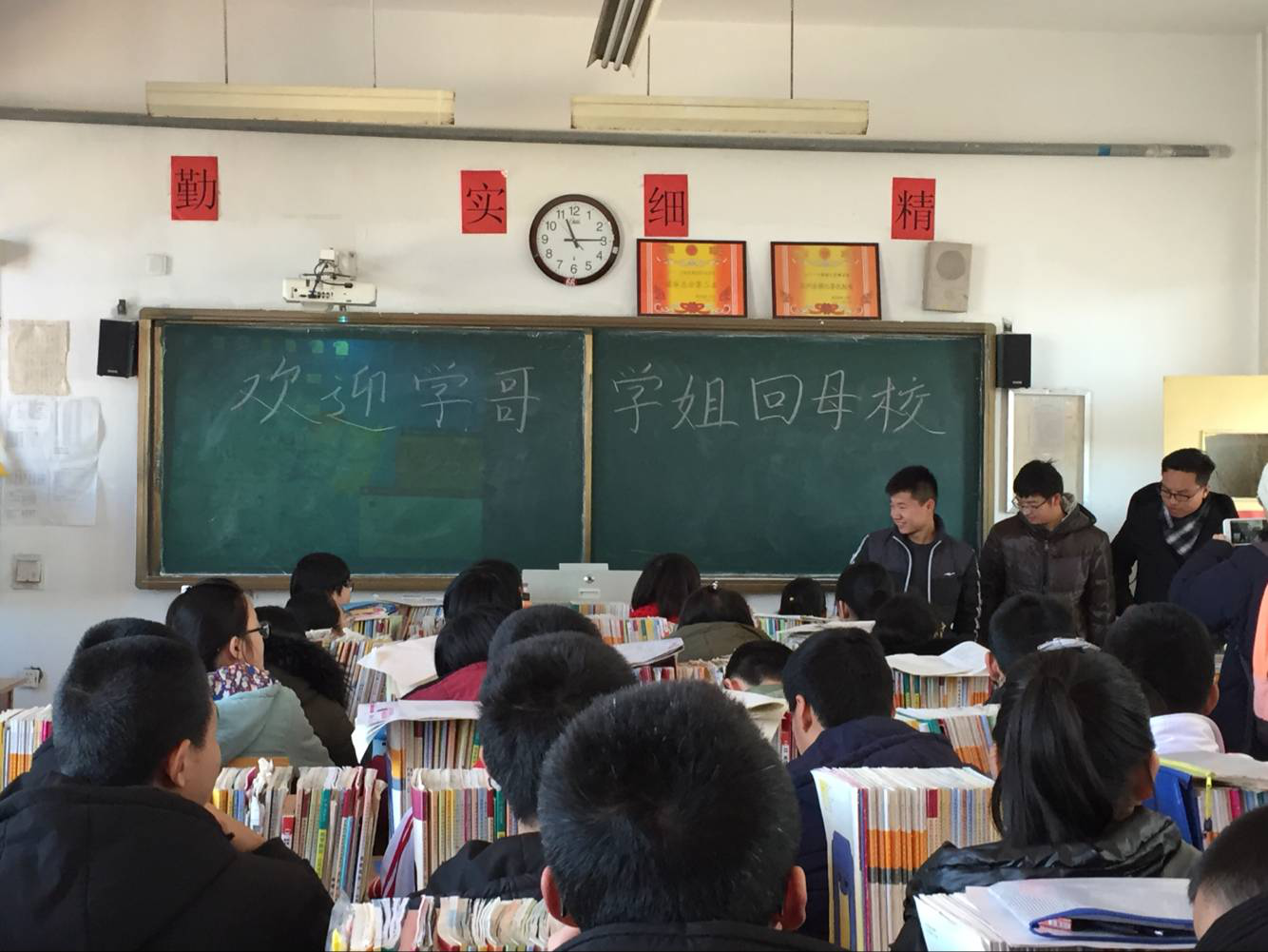 为积极响应我校开展母校行活动的号召,宣传我校综合实力与教学水平,进一步扩大我校影响力、为我校争取更多优秀生源,2018年2月8日,吉林大学2017级的穆双双、范珍友、张筝、甄芮芮、昝兆平和侯立虎来到母校商河一中,在与张筝同学高中时期的班主任见面后,一行人进入到了高三学子们所在的教学楼,准备开展回校宣讲活动。