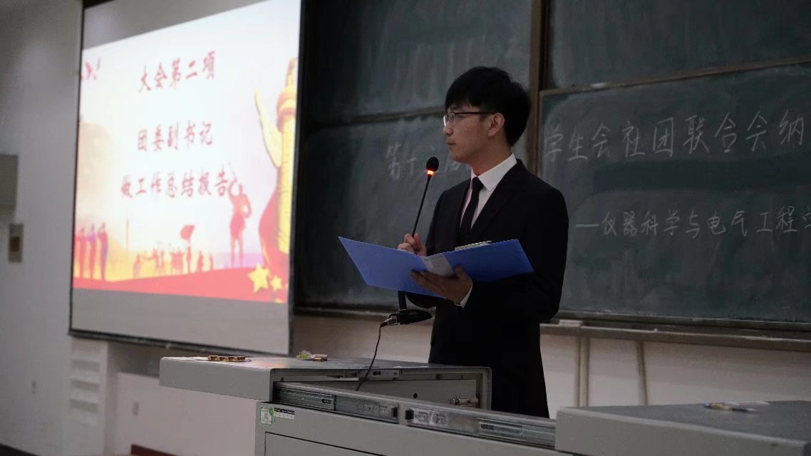 第十三届团学社组织联合纳新大会于2018年 3月 18日晚上6:30在吉林大学前卫南区经信教学楼F7阶教室正式举行。我院分团委副书记仲点石、学生会主席马松辰、社联主席王华梁、学生会副主席谭济昕及各部门部长、副部长们出席了此次大会。