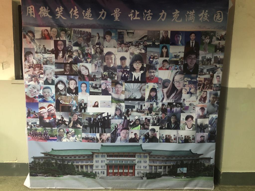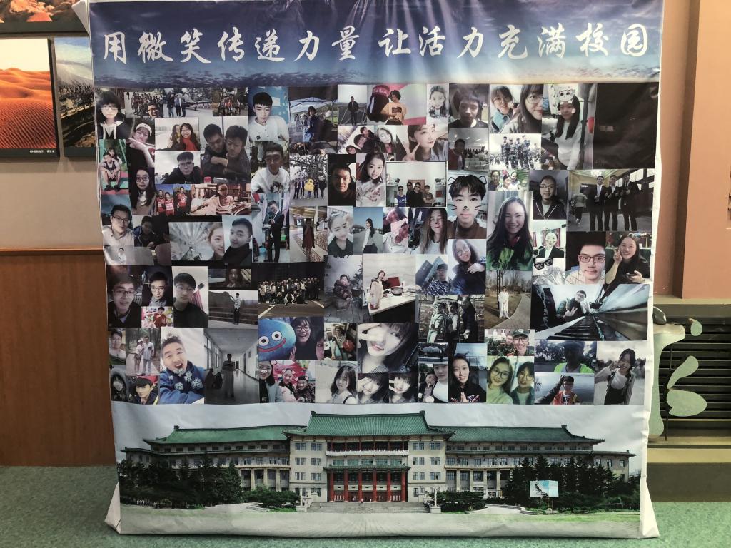 此次活动的照片主要来自朝阳校区五个学院的同学们及教职工。活动从照片征集阶段就引起了同学们的广泛关注,同学们都热情配合,在相机或手机前定格下自己或他人的笑脸,各种样式层出不穷,趣味不断。在征集完照片后,开展了笑脸墙的设计与制作过程,最终决定利用现有照片制作两个不同的笑脸墙,于朝阳校区地质宫一楼和食堂一楼分别展出。展出后,其周围也聚集了各个学院的师生观看,并进行了愉快的谈论,不知不觉也都露出了微笑。