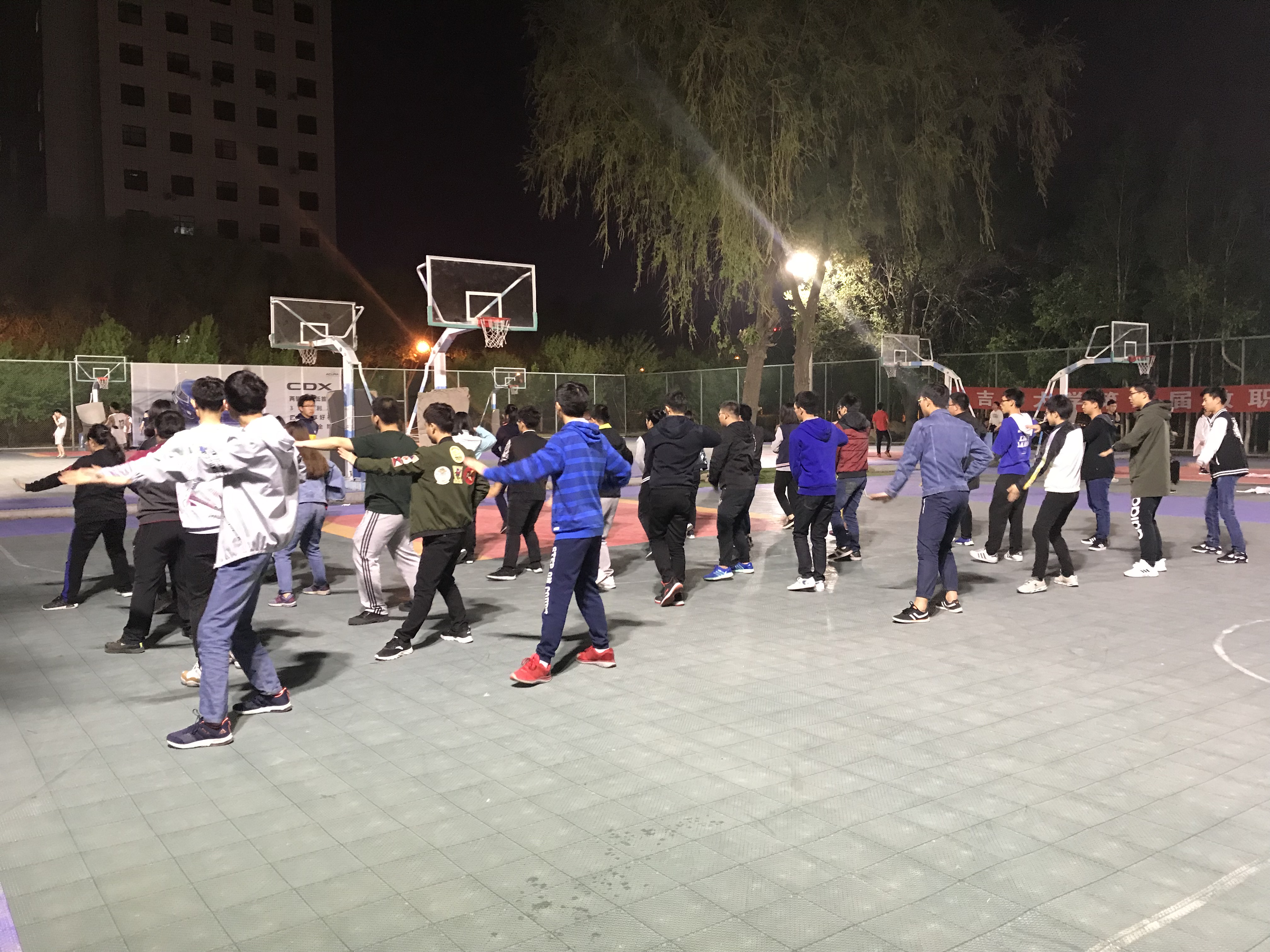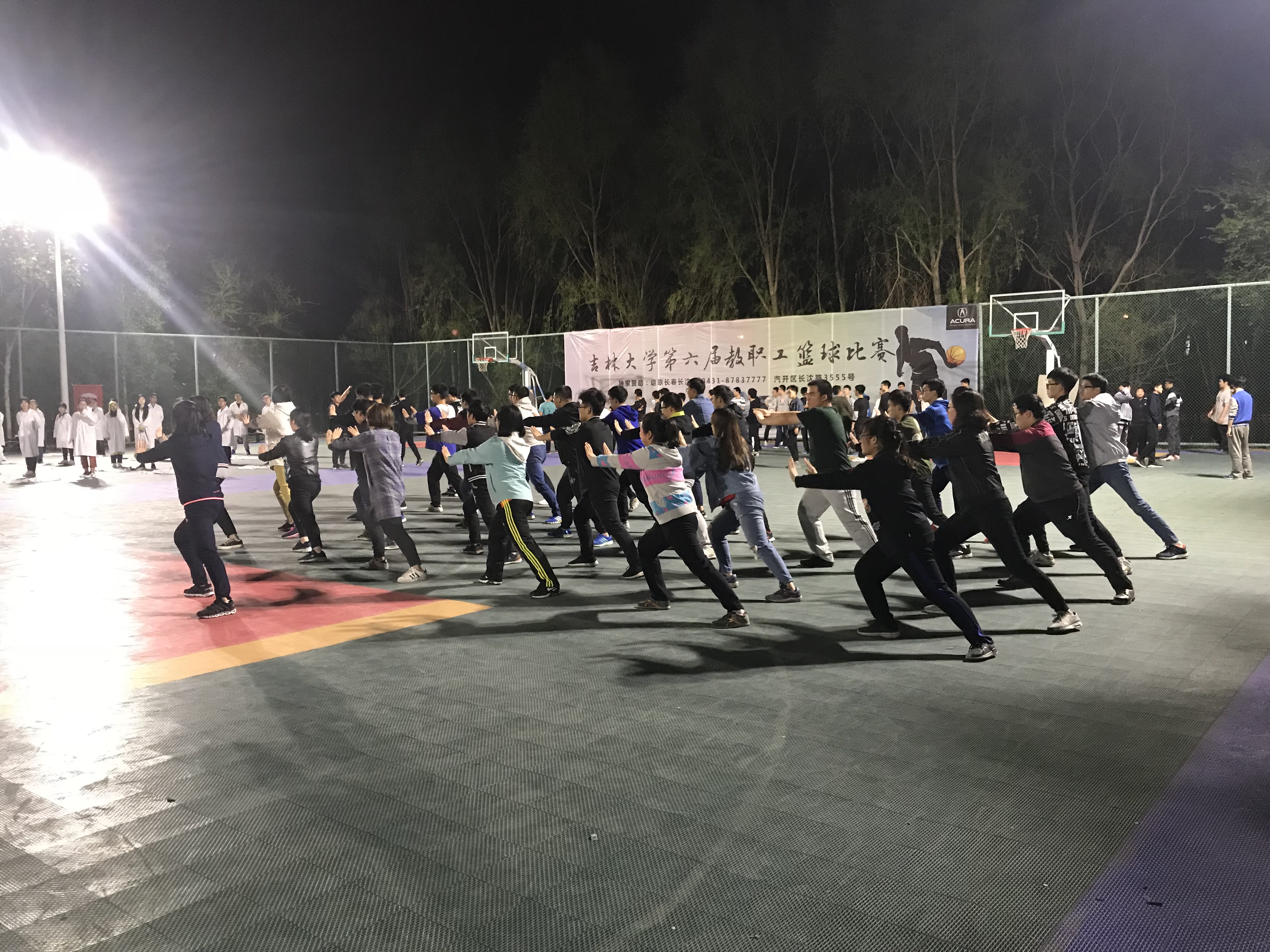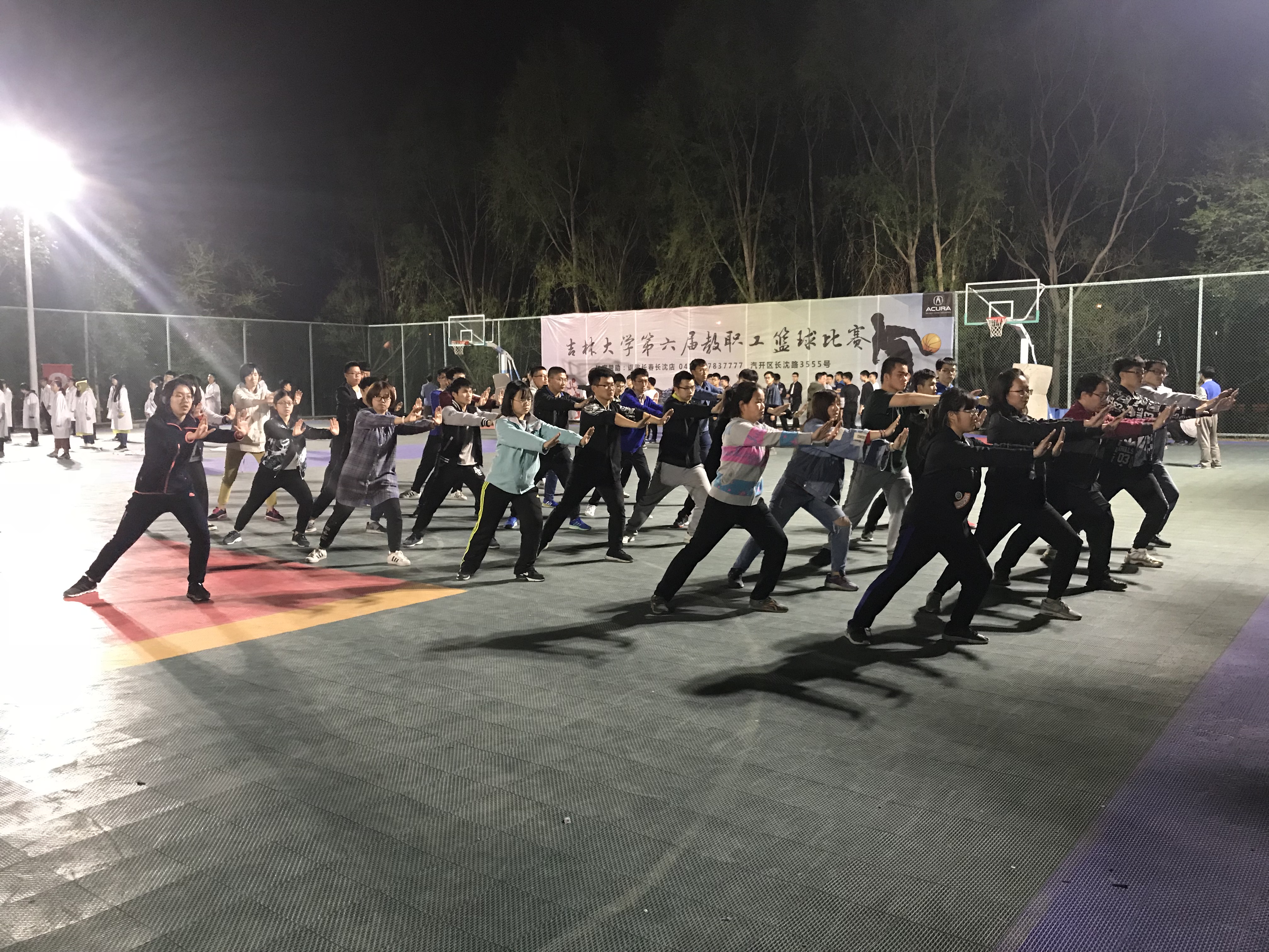 于2018年4月20日开始在体育馆东侧篮球场展开太极拳的训练工作,并固定在每周的周二、周四、周五和周日的晚上9:00-10:30进行训练。