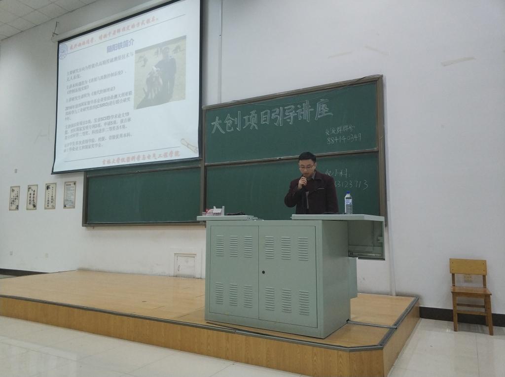 首先,千承辉老师对大创项目的流程进行了简要介绍,强调了大创项目的申请条件。随后引导讲座切入正题,王智宏老师介绍了她的研究方向:光谱技术、精密测量技术、快检技术、重力感应技术和机器人方向,之后又对她的两个大创项目:“地面自动寻位全量程辐射定标装置”和“基于细分的电压/电流高精度检测系统” 进行讲解,在比较容易出现疑问的部分,老师以图解的方式带领同学们一起思考,加深了大家对项目的理解,使学生们收获匪浅。接着王世隆老师介绍了自己的课题:“基于飞行平台的软硬件设计需求”,分别从时空域航空电磁探测仪器系统研发的直升机平台和多频复信号电磁探测仪器系统研发的无人机平台两个方向全面讲解了飞行器平台的原理和设计理念,并表示很愿意吃苦耐劳、勤奋努力的学生加入他的团队。随后蔡靖老师登台,介绍了刘光达老师带队的医学仪器特色的大创项目:穿戴式人体生理参数检测仪器、光电肝储备功能分析仪、EEG-NIRS脑机接口与疾病检测以及人体微信号检测算法,从人体运动科学、运动生理学和运动医学层面上详细解释了各个项目的内容和未来研究方向,蔡靖老师以趣味性的讲解引来同学们的阵阵掌声,将引导讲座的气氛推向高潮。在同学们的掌声中,接着随阳轶老师走上讲台直入主题,讲述了自己的项目:“守护颈椎的智能眼镜”和“机器鱼的磁干扰补偿研究”,以通俗易懂的语言分析了这两个项目的研究内容,并且将较难理解的机器鱼项目类比无人机的相关模块进行详细介绍。之后,介绍了以地学部地学特色为主的“磁共振地下水探测”项目,又给同学们提供了一个新的选择。整个引导讲座过程中,千承辉老师也不时参与进来,提出自己的看法。