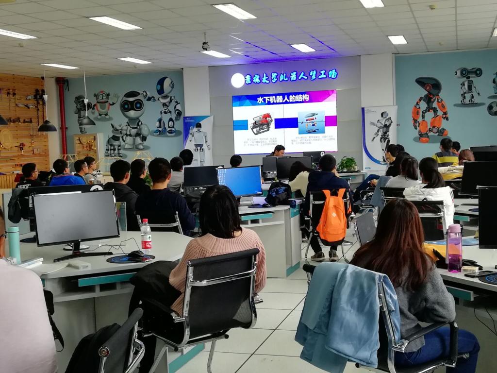 为给对机器人有兴趣的同学介绍助老服务、水中机器人入门的相关知识,促使同学对助老服务、水中机器人有初步了解,培养同学理论与实践相结合的能力,吉林大学大学生科技创新协会于2018年11月11日下午1:30在李四光楼501举行了助老服务、水中机器人入门引导课。引导课由陈金龙同学、王浩帆同学、陈冠桥同学以及付强同学主讲,千承辉老师也在百忙之中来到了课堂,为同学们排忧解惑。对机器人感兴趣的仪电学子参与了本次引导课。