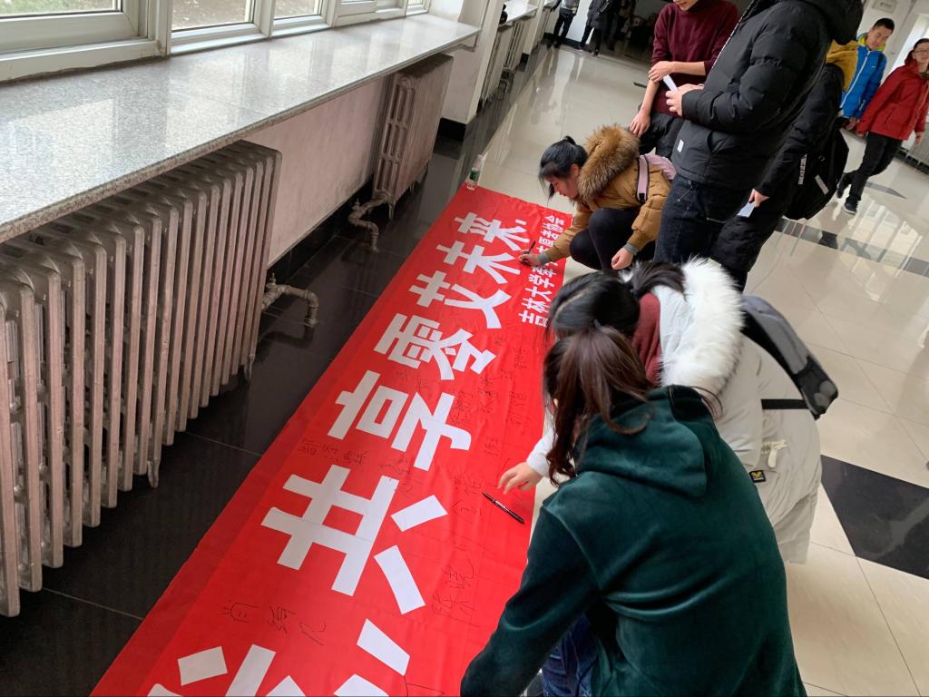 志愿者们于上午8:30到达经信教学楼,提前做好活动准备。上午9:00活动正式开始。志愿者们首先进行了艾滋病防治知识宣传,为参与者讲解防治艾滋病的相关知识,让更多的大学生能够正确认识艾滋病。随后引导他们在印有“提笔留名,共担防艾责任,牵手你我,共享零艾未来”的条幅上签名。在志愿者的引领下,参与者通过说出防治艾滋病倡议文字并录制短视频的形式号召大家参与到艾滋病防治宣传活动中。最后进行了艾滋病相关问题的问答活动,志愿者在题库中随机抽取题目发问,参与者按照题目要求进行作答,利用此环节进一步向参与者科普艾滋病的相关知识。志愿者们还赠与了参与者吉林大学牵手志愿者协会特别制作的“世界艾滋病日”纪念书签。活动过程中同学们的参与积极性高,现场气氛热烈。志愿者们在活动结束后进行了收尾工作。