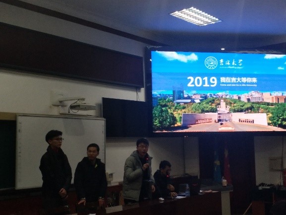 接下来,田洪迪同学为大家讲解了吉林大学国际合作以及科研成果的内容,这充分展现了吉林大学的学术实力。让台下的同学们产生了更浓厚的兴趣,特别是在对吉林大学近年来取得的重大科研成果进行介绍时,台下掌声不绝。最后,鲍绪万同学结合自己的亲身体验深入介绍了吉林大学的校园生活,在这个环节欢声笑语不绝,让同学们对吉林大学的向往又加深了一层。在宣讲的最后,四位吉林大学学子向高三的同学们分享了自己在高中时期的学习经验,解答了同学们对于高考前最后时期学习方法的问题,并一起鼓励了同学们努力拼搏,高考加油。