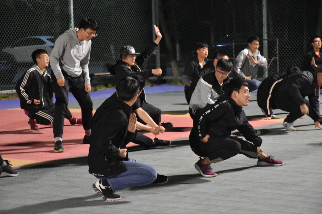此次三路长拳队伍主要由2018级同学组成,由2017级同学担任教练。曲德馨同学和刘明鑫同学作为长拳教练向参加本届运动会长拳比赛的队员们详细地讲述了三路长拳的动作要领,并亲自示范。教练们对学生的手型、掌型、步型等每个细节严加指导,力求保证每个同学都能标准、娴熟地完成整套长拳动作。虽然晚上天气较冷,但同学们依然精神饱满地进行训练,没有丝毫的懈怠,在教练的不断纠正中,努力将每一式做到最好。“齐心协力、争创佳绩、仪电三军、所向披靡”是仪电长拳组的口号,也是同学们精神力量的体现。在这北国春城的夜色里,在美丽的吉林大学的操场上,同学们有力的动作,响亮的口号,无不体现出仪电学子们昂扬的斗志和意气风发的精神风貌。